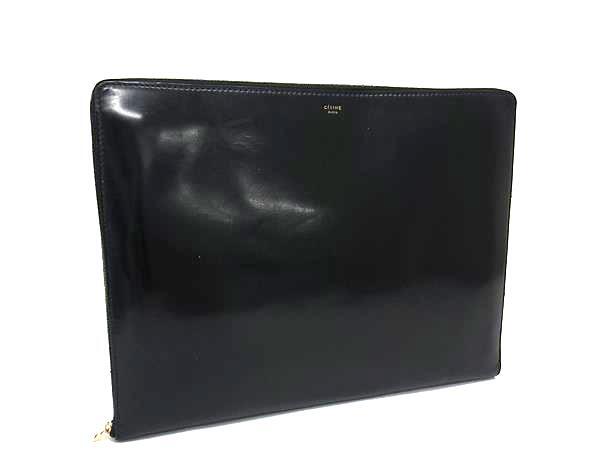 1円 CELINE セリーヌ レザー クラッチバッグ セカンドバッグ ポーチ 書類かばん ビジネス 紳士 メンズ ブラック系 BS0968