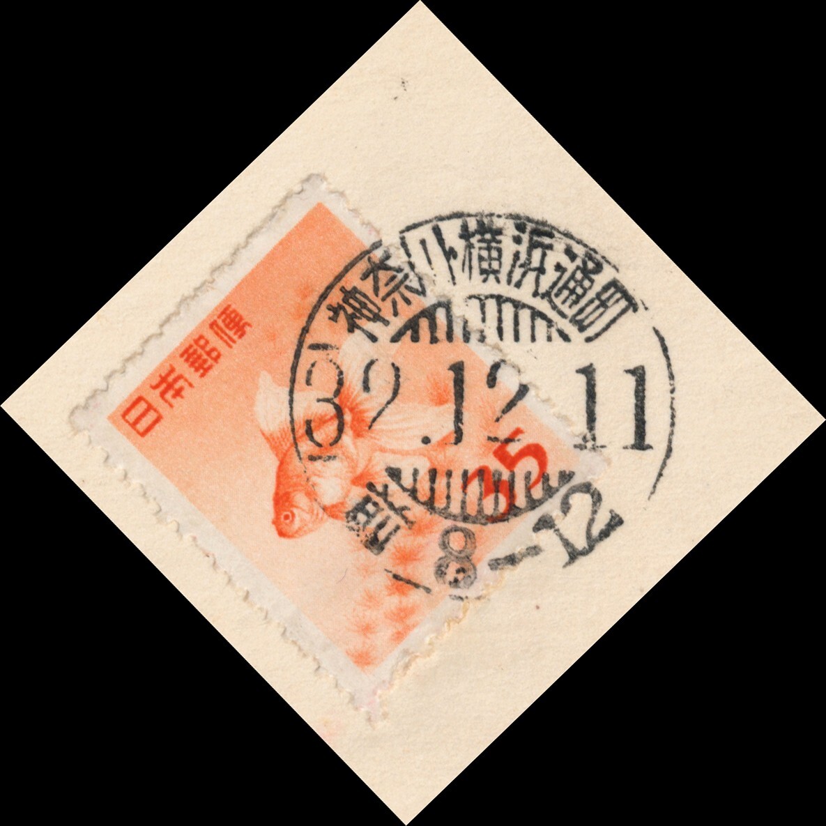 H44 航空便|金魚35円/米宛印刷物書状 櫛型印:神奈川・横浜通町/32.12.11/前8-12 定形外発送※ エンタイア