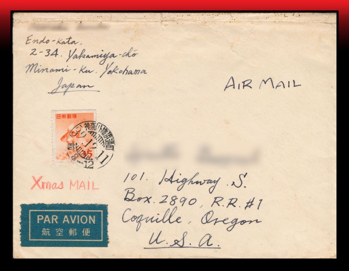 ●航空便|金魚35円/米宛印刷物書状 櫛型印:神奈川・横浜通町/32.12.11/前8-12 定形外発送※ エンタイア