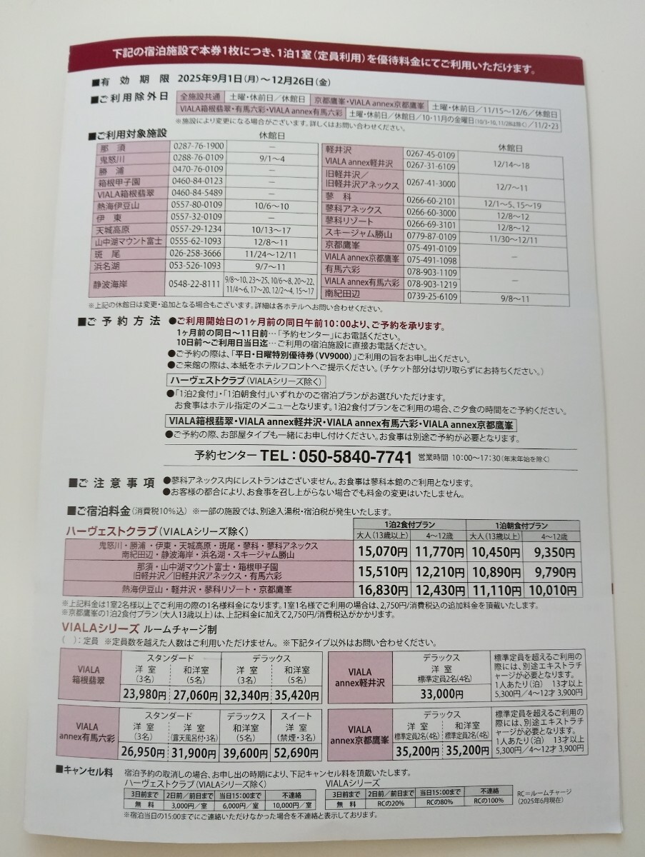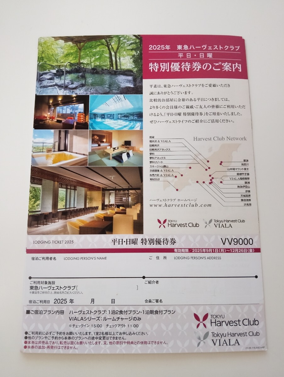 東急ハーヴェストクラブ 特別優待券 平日・日曜日利用可能 1枚(4枚まで) 有効期限2025.12.26 利用券 那須 鬼怒川 熱海 VIALA箱根 旧軽井沢