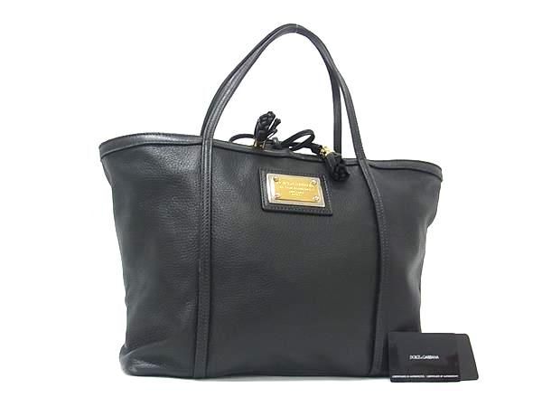 1円 ■美品■ DOLCE&GABBANA ドルチェ&ガッバーナ レザー ハンドバッグ トートバッグ ショルダー 肩掛け レディース ブラック系 BN5611