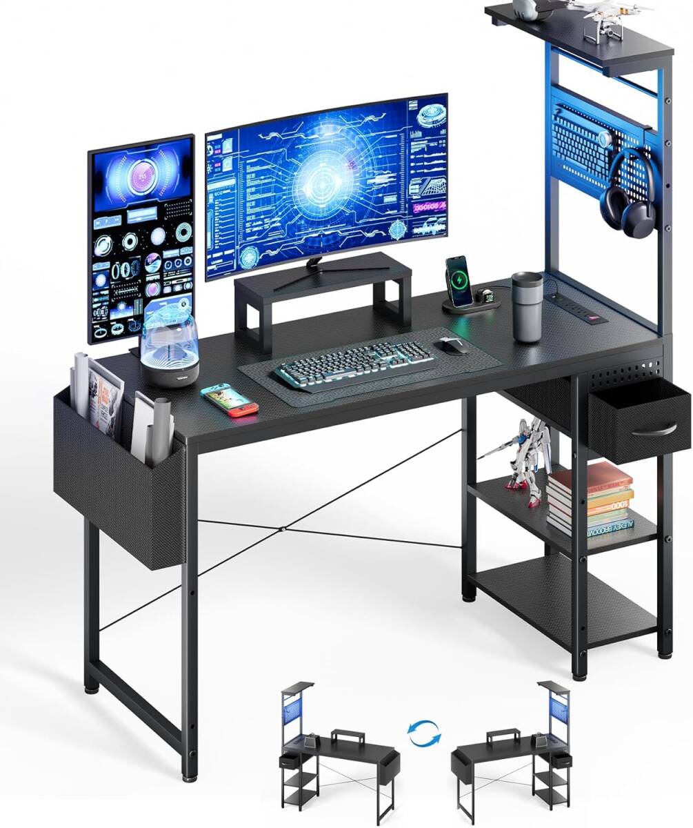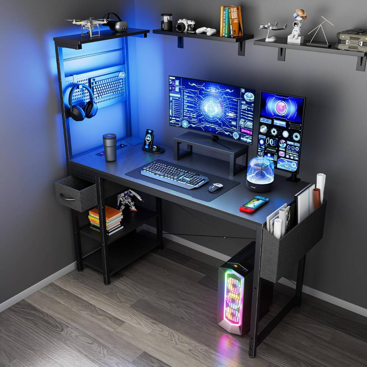 ブラック色 幅120cm DOMICON ゲーミングデスク 引き出し パソコンデスク ゲームデスク PC desk 作業机 ワークデスク オフィス