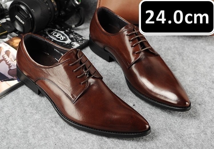 メンズ ビジネス レザー シューズ 本革 紐 ブラウン サイズ 24.0cm 革靴 靴 カジュアル 屈曲性 通勤 軽量 新品 【apa-163】