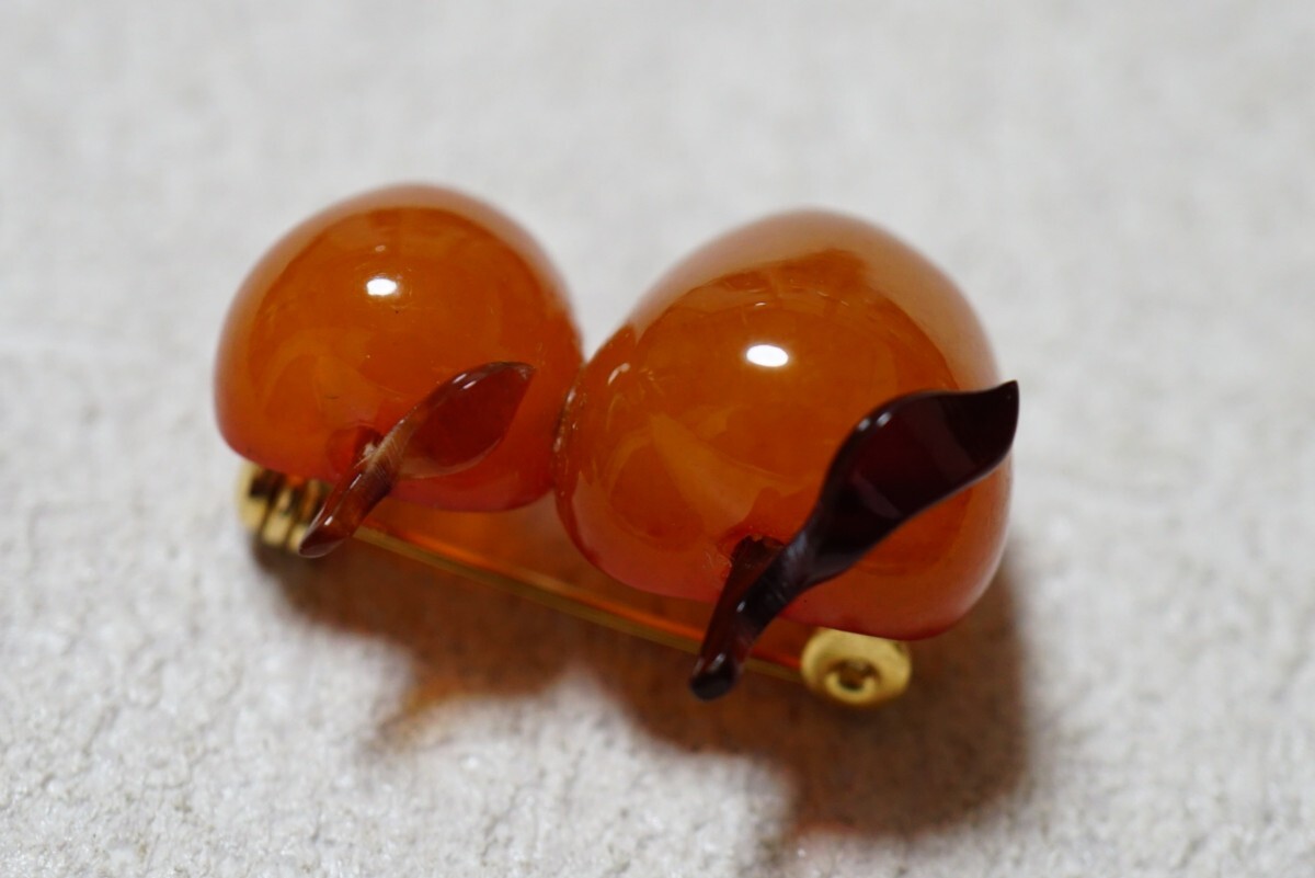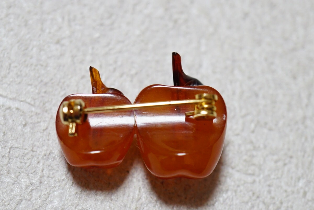 963 本鼈甲 べっ甲 果物 林檎 ブローチ ヴィンテージ アクセサリー べっこう 装飾品