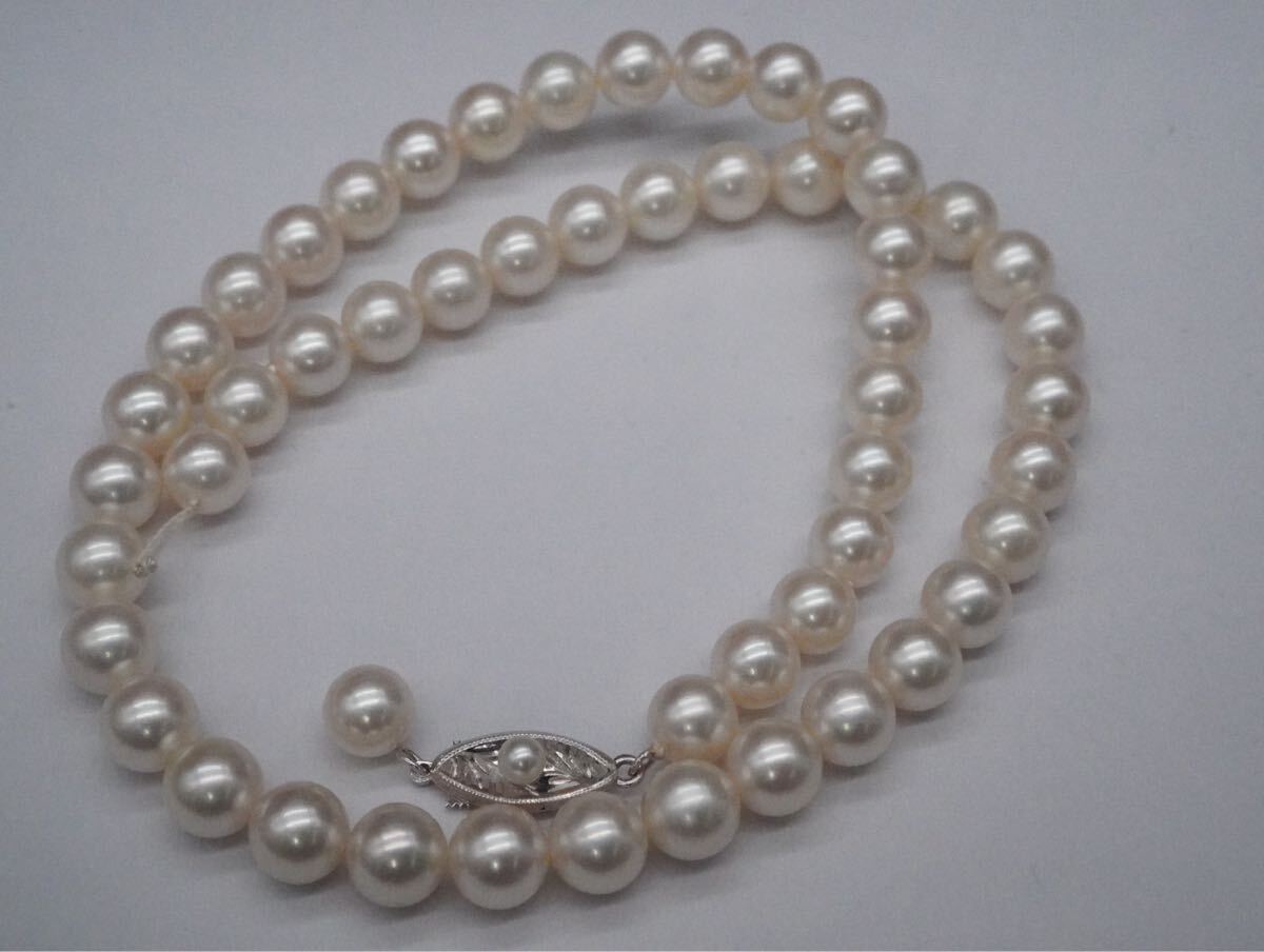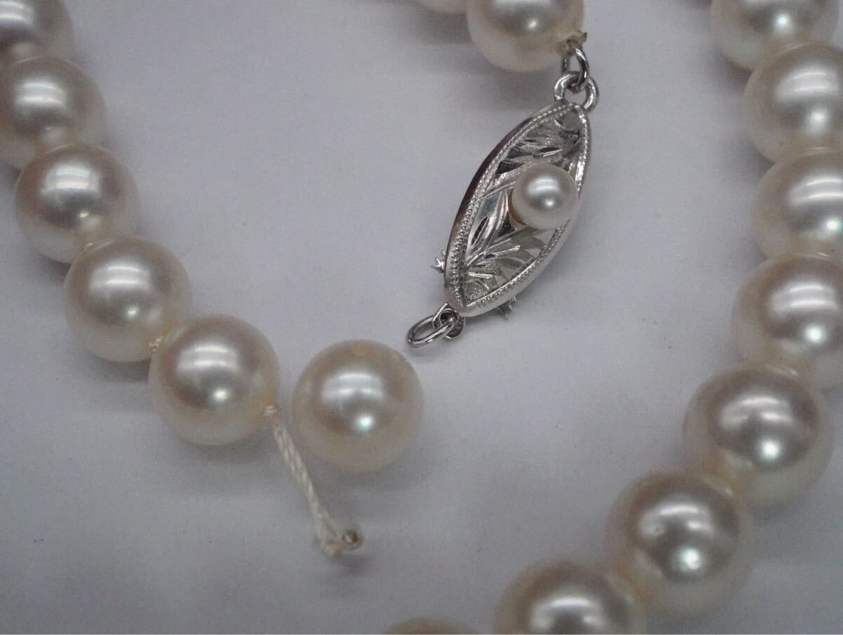 紐は切れておりますが真珠の珠は欠品しておりません。紐交換が必要となりますので交換を前提にご購入ください