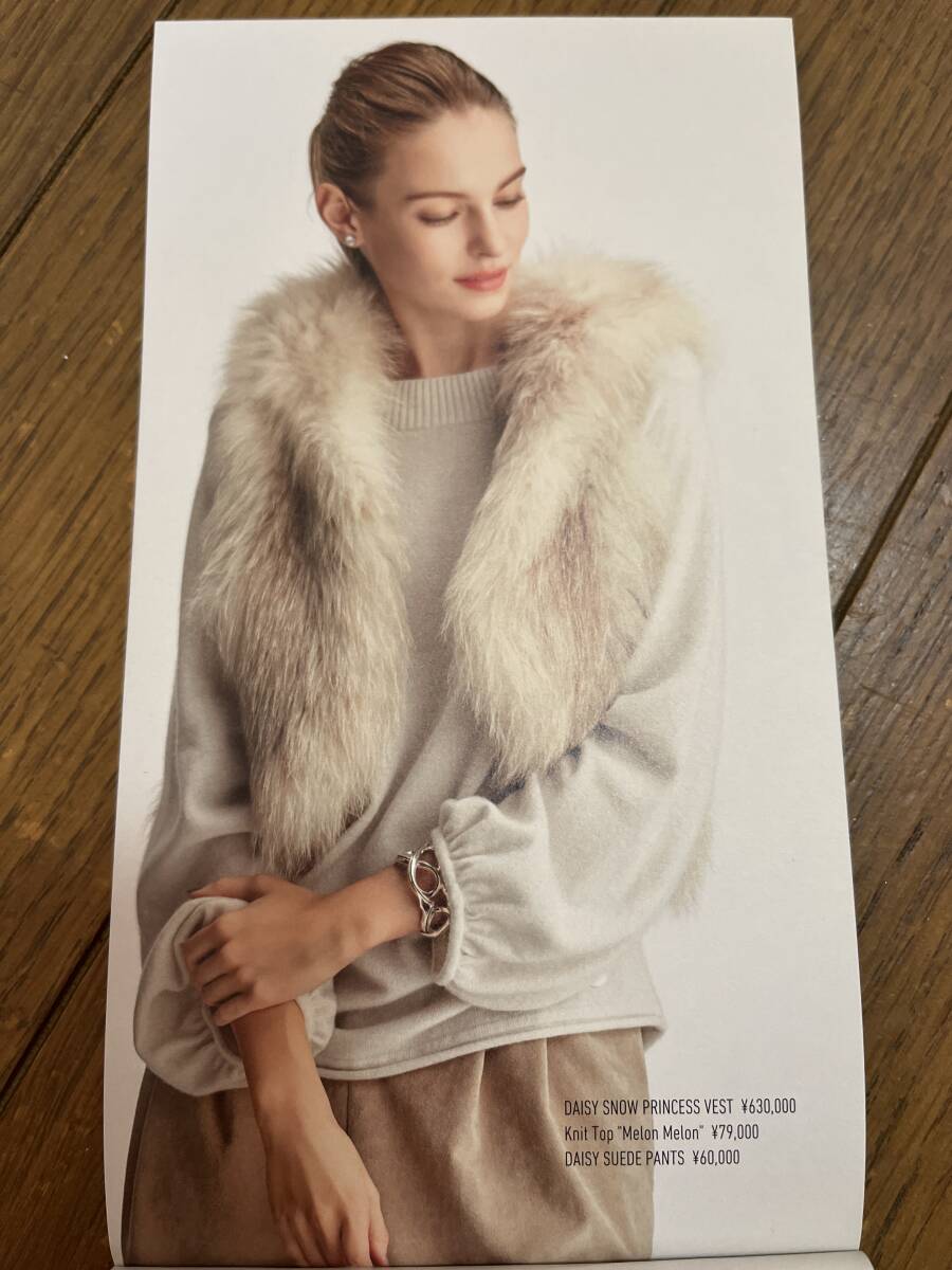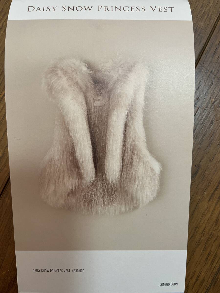 ふわふわの毛足長め、フォックスファーのベストです。とても軽い仕上げです。購入価格は630,000円。