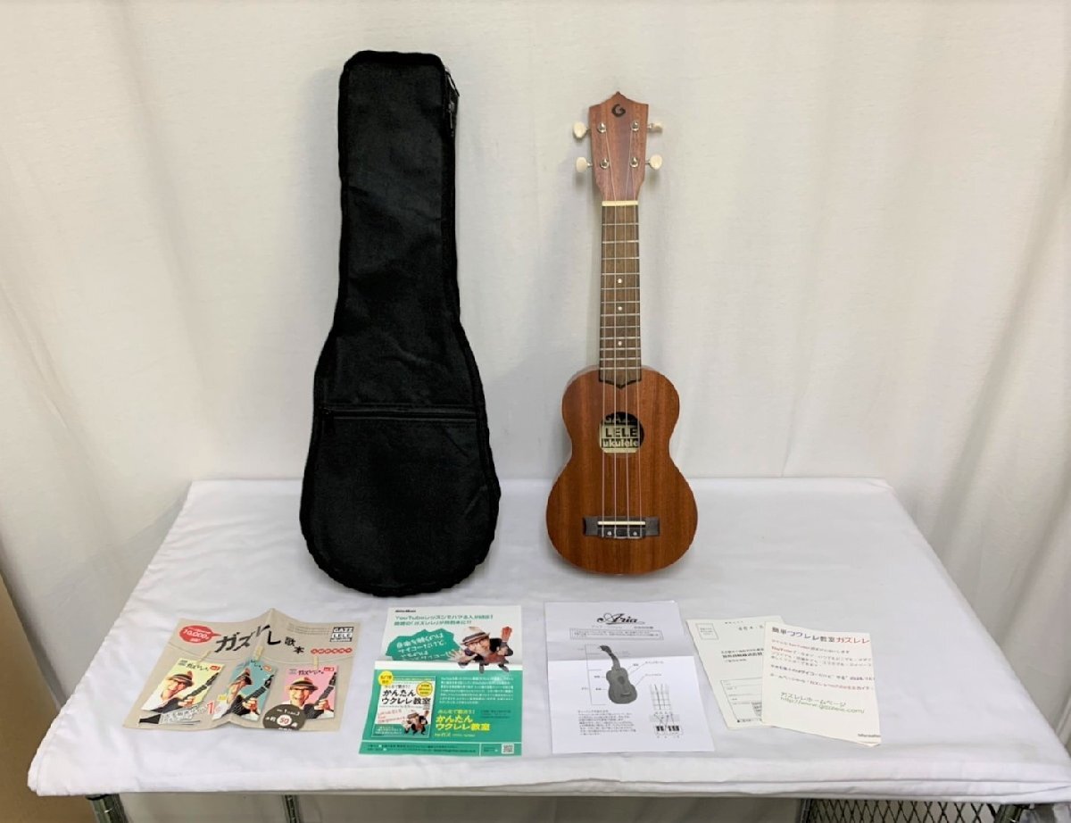 ▽GAZZ LELE ガズレレ GU-1 1432 ソプラノ ウクレレ ブラウン系 ソフトケース付き 訳アリ・長期保管品 ジャンク▽006928