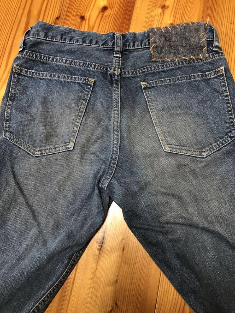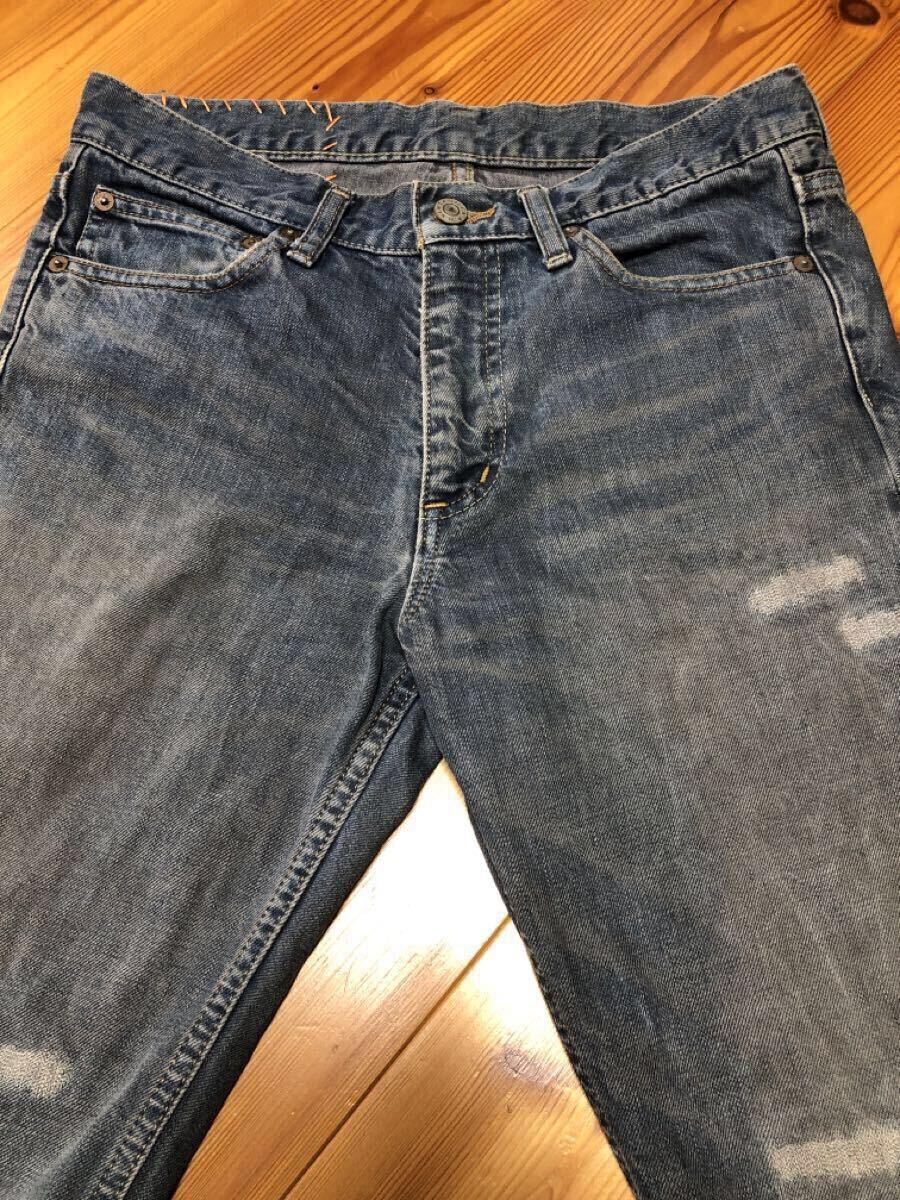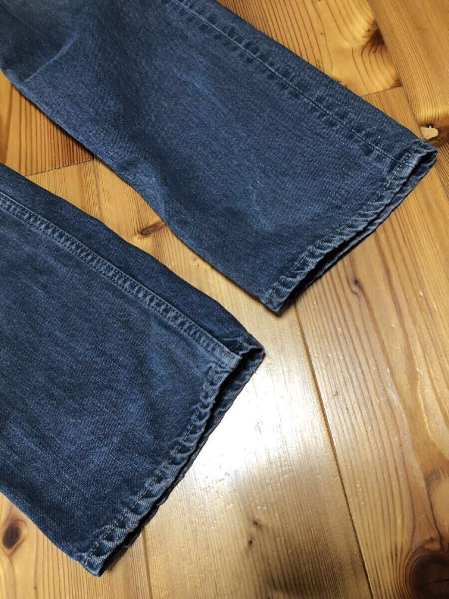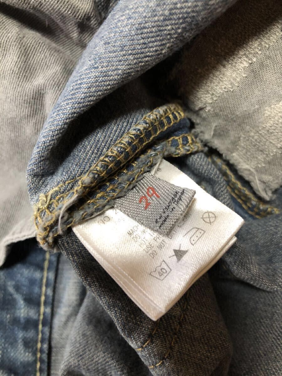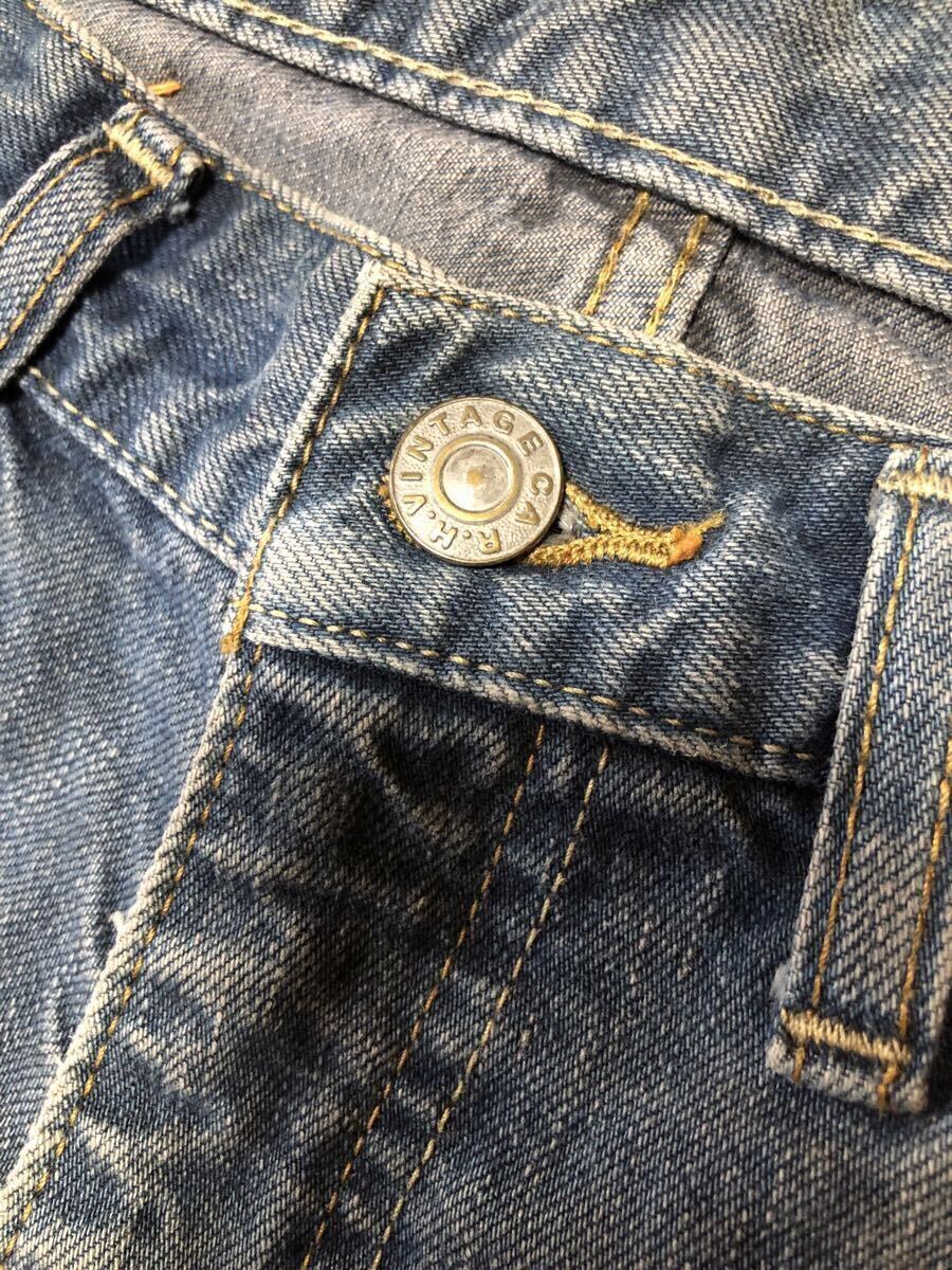 ロンハーマンヴィンテージのダメージ加工デニムジーンズです。シルエットはストレート。色はヴィンテージ風なインディゴになっています。ボタンはR.H.Vintage CAの刻印入り。使用頻度少なく状態は良いです。
