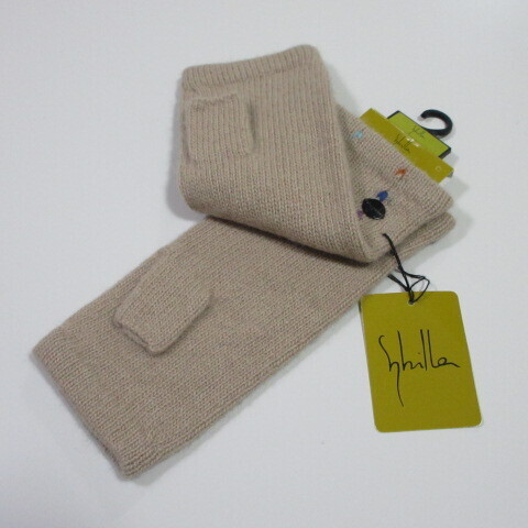 レディース手袋【sbilla】シビラ指なし手袋 ニット手袋/ベージュ