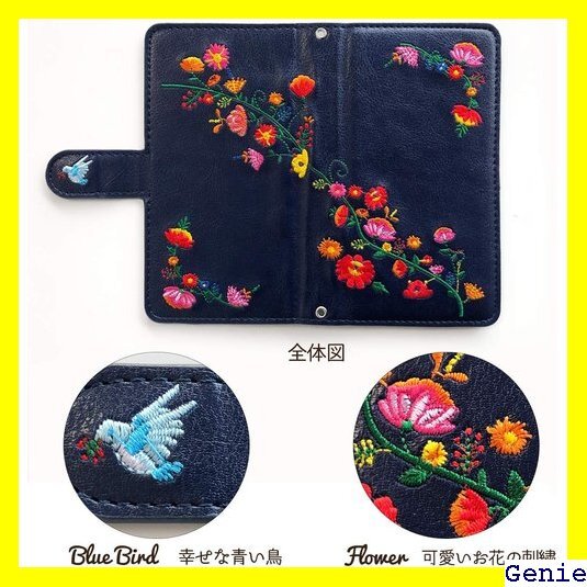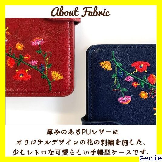 少しレトロで可愛い花の刺繍を施した手帳型ケースです。