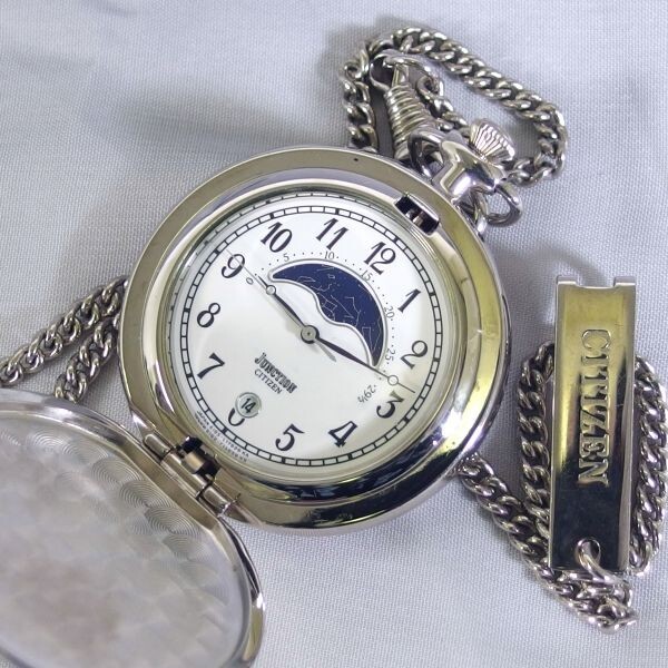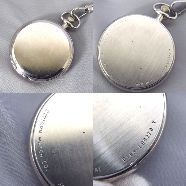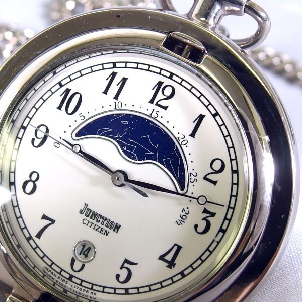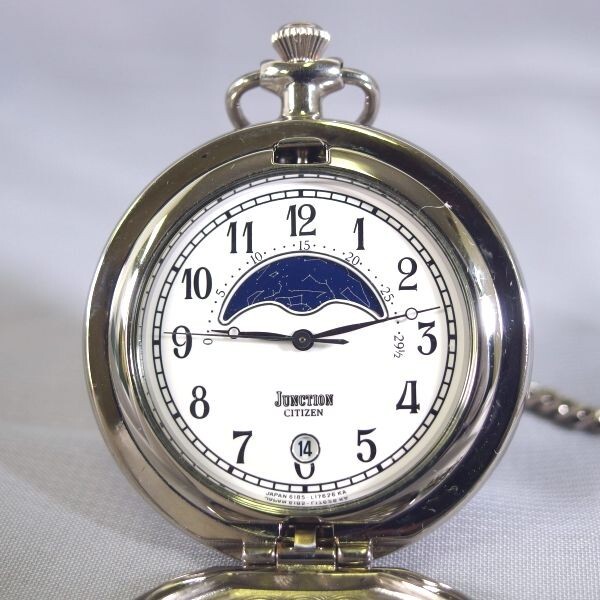 【1円~】CITIZEN JUNCTION シチズン ジャンクション 懐中時計 シルバー xホワイト 純正チェーン付き 6185-L09278/60サイズ