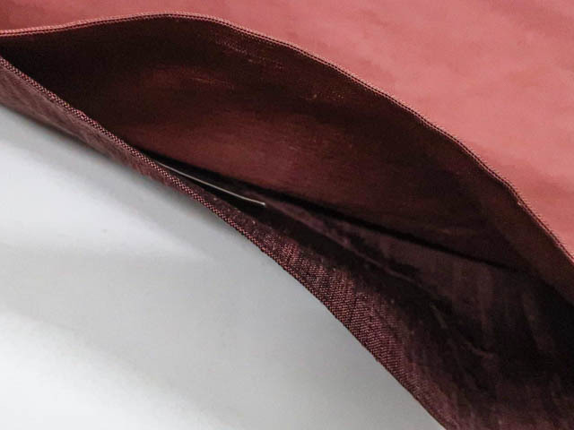 リサイクル商品の為、お太鼓に薄シミ、薄ヤケがございますがご着用いただけると存じます。 地色は赤紫です。 1枚目の画像が近いお色かと思われます。 素材は正絹です。 |