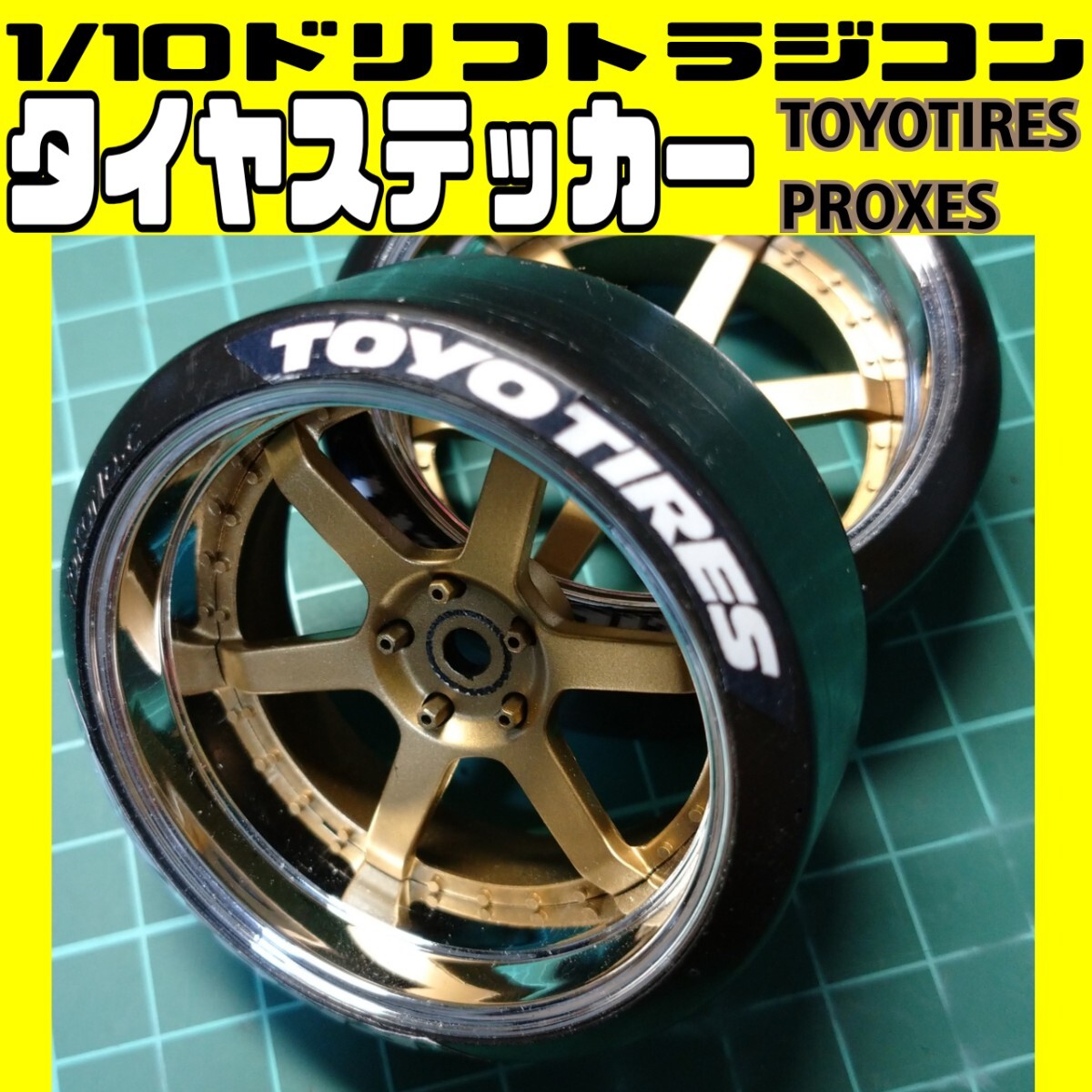 トーヨータイヤ(TOYOTIRES/PROXESロゴ)をリファインした1/10ドリフトラジコン用のタイヤステッカーの白色バージョンです。