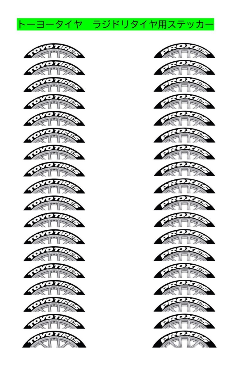 TOYOTIRESロゴ16枚、PROXESロゴ16枚、計32タイヤ分。