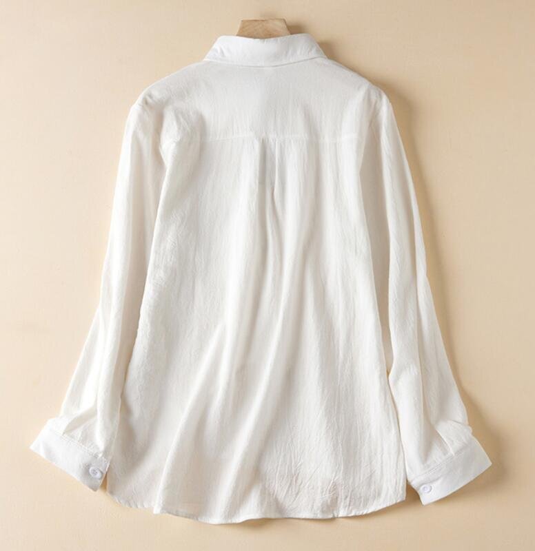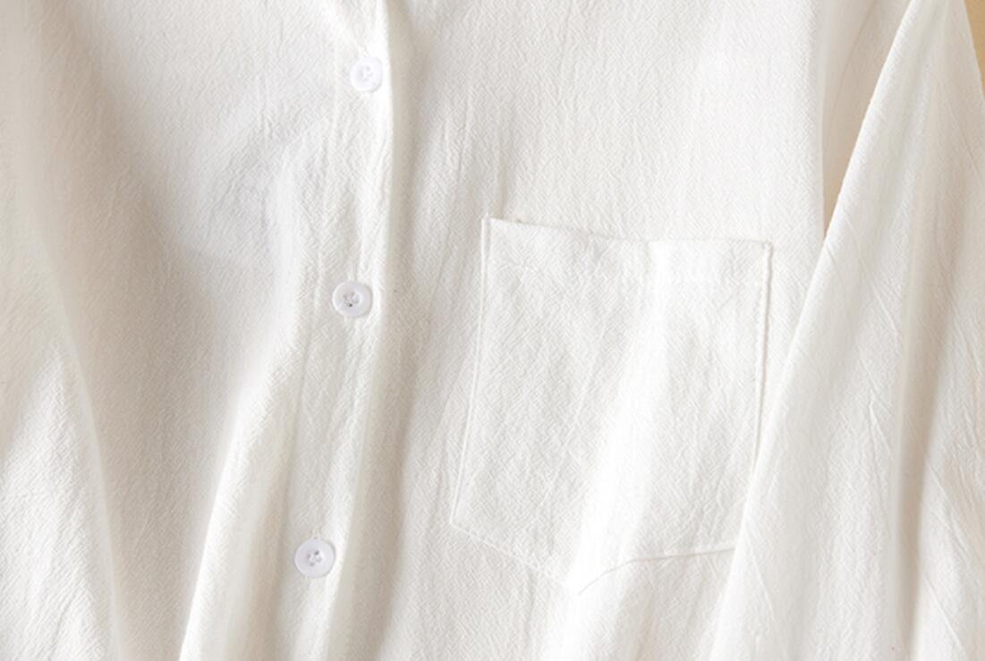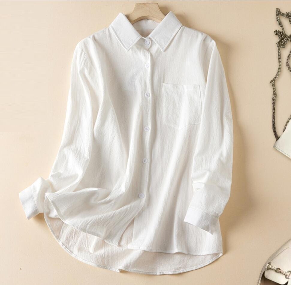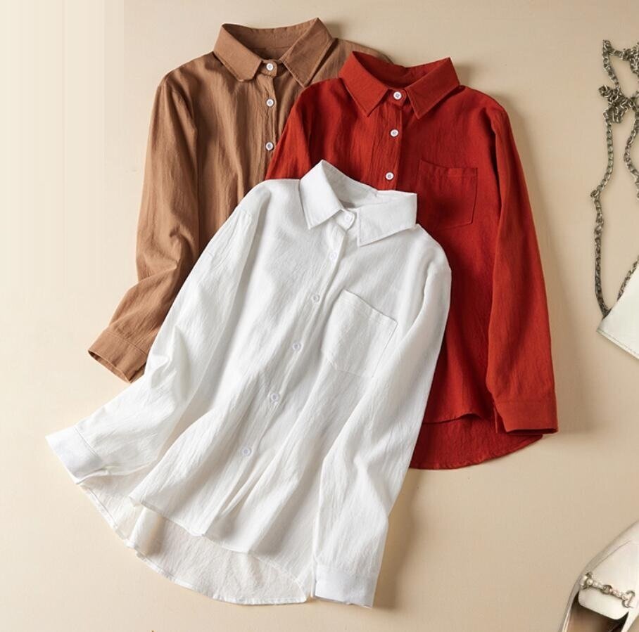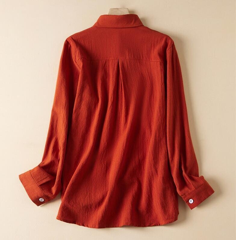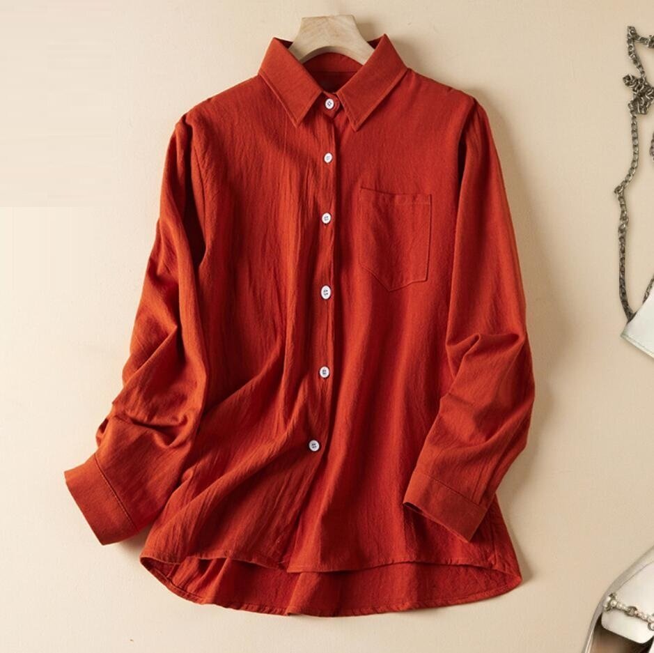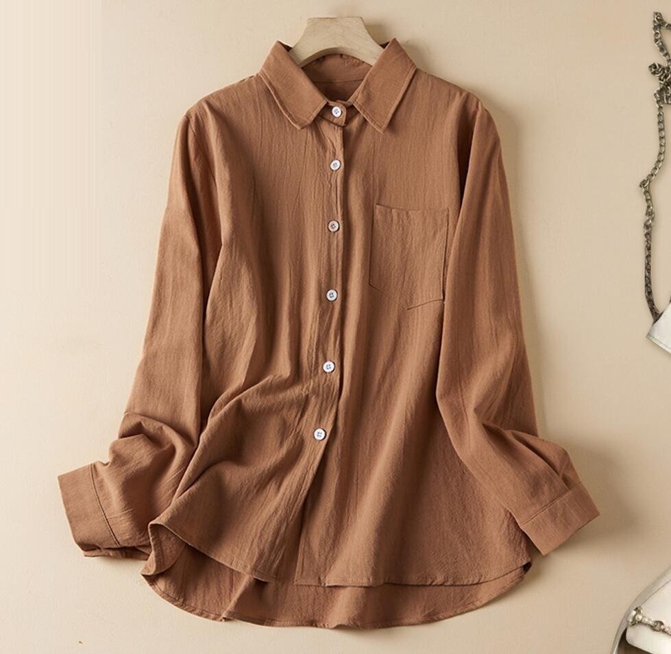 チュニック レディース 綿麻 無地 シャツブラウス ゆったり 普段着 可愛い 大人 長袖 トップス★カーキ /XLサイズ