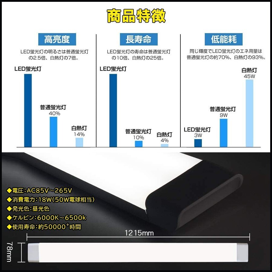 ★30日間保証付き★高輝度 薄型 直管LED蛍光灯 5本セット 消費電力18W 50W相当 5500lm 昼光色6000K 3列LED搭載 器具一体型