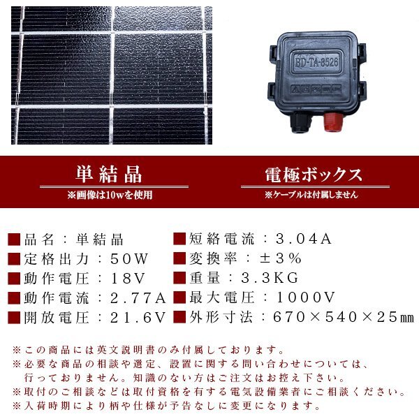 【送料無料】『12V 50W』単結晶 ソーラーパネル アルミフレーム キャンピングカー トラック 船 太陽光 充電 蓄電 チャージ 670×540×25mm