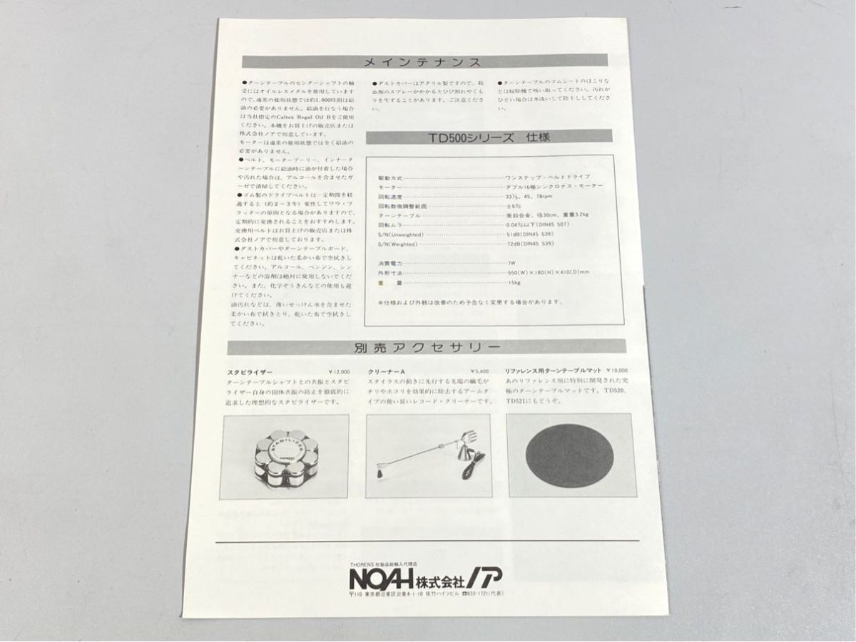 THORENS TD520/521用 取扱説明書