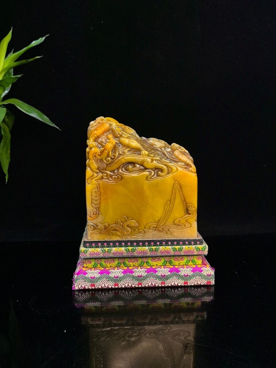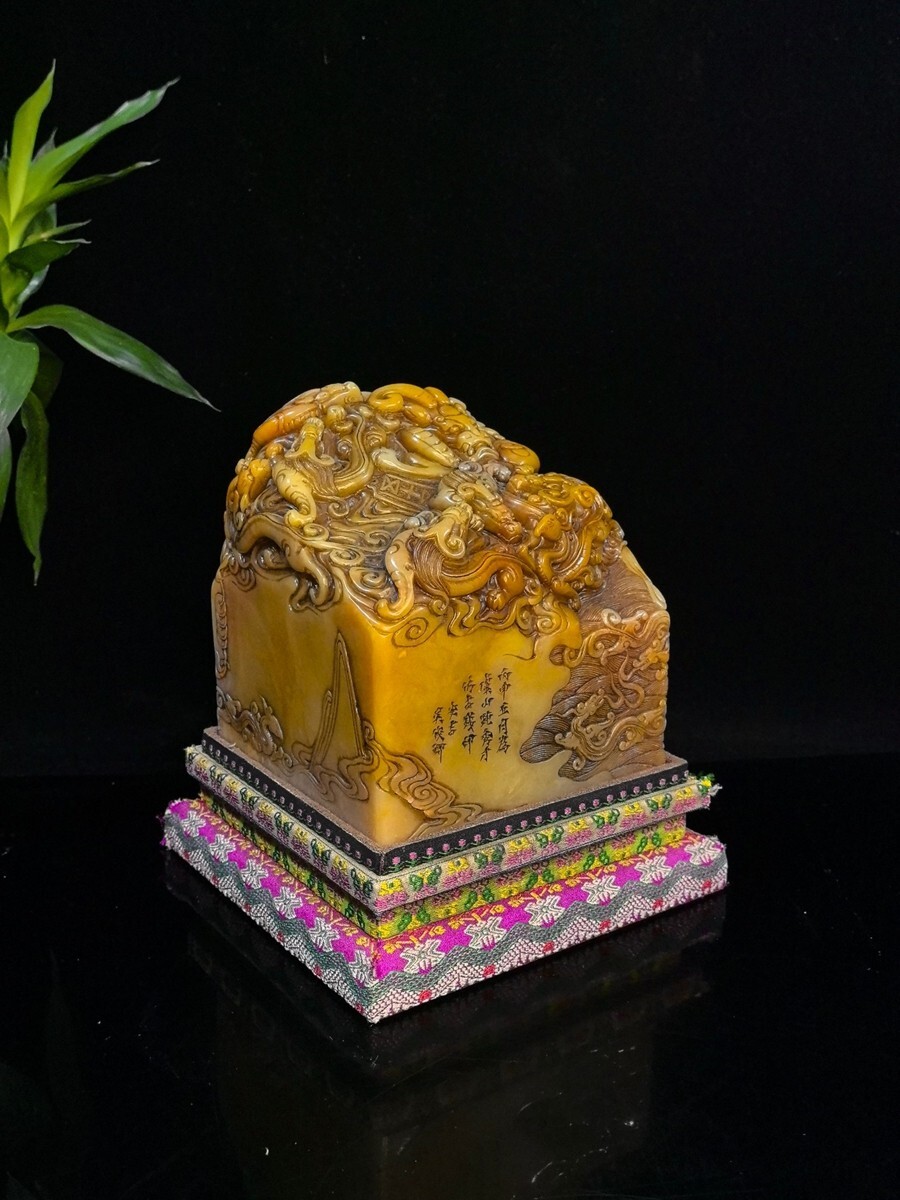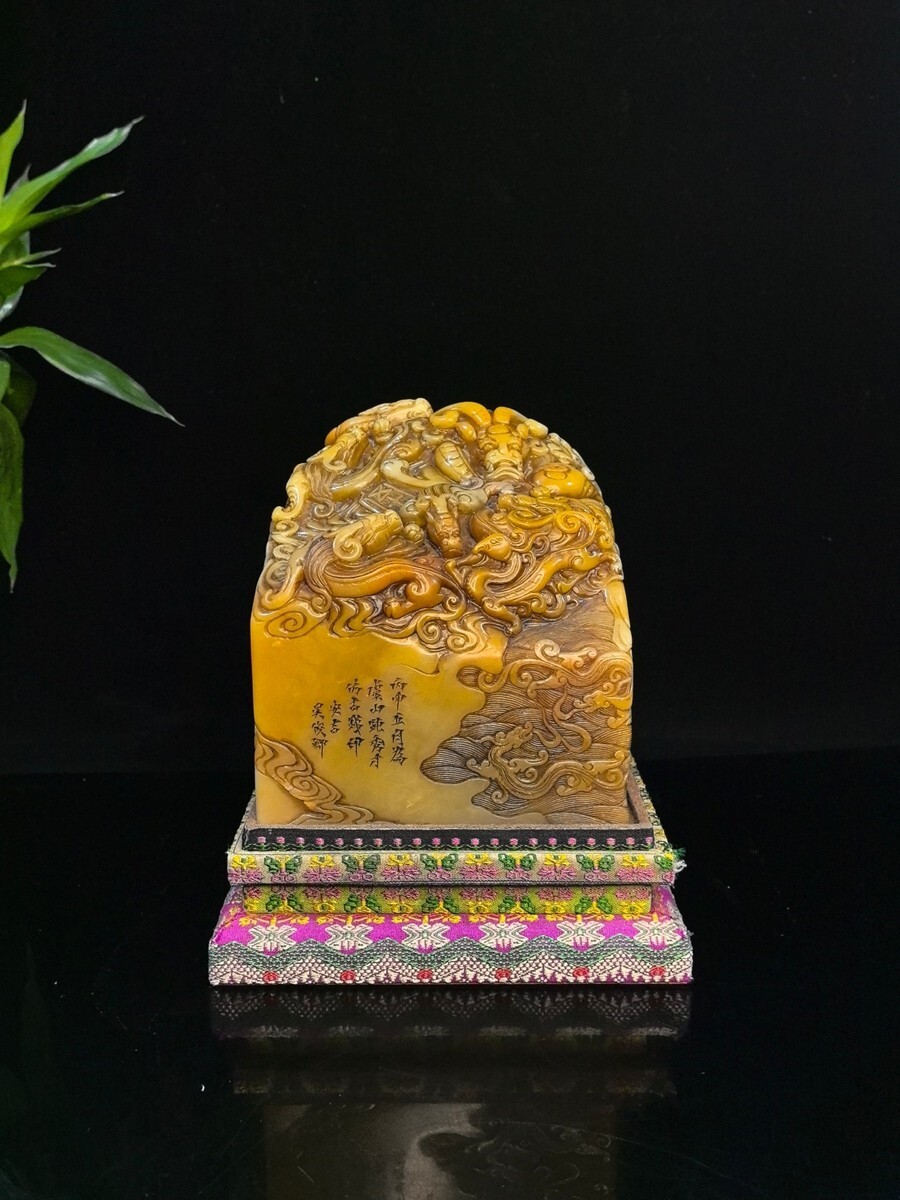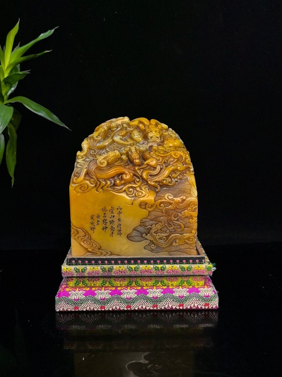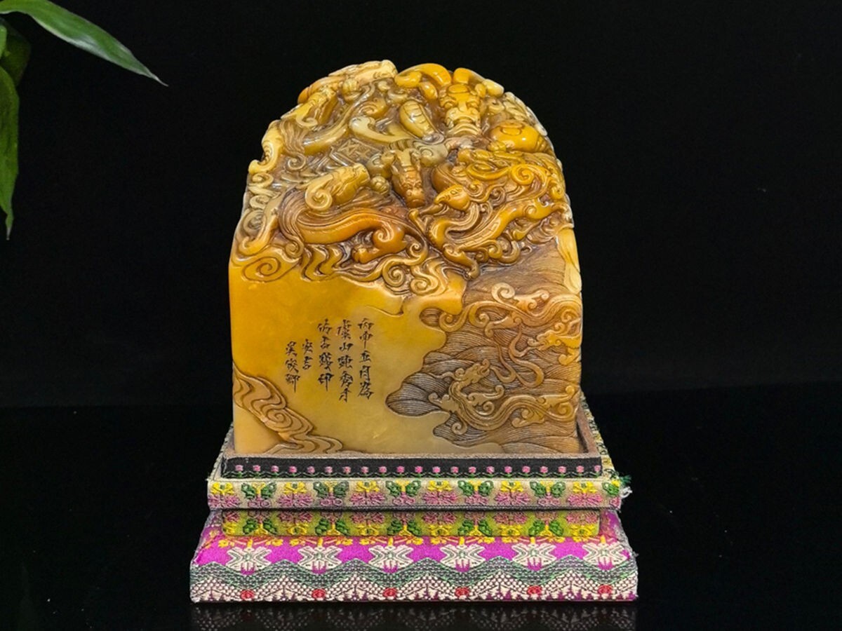 「清 呉俊卿 老寿山石 田黄石彫り 群龍印章」極細工 擺件 古賞物 中国古美術 旧蔵出