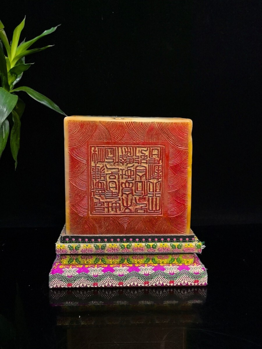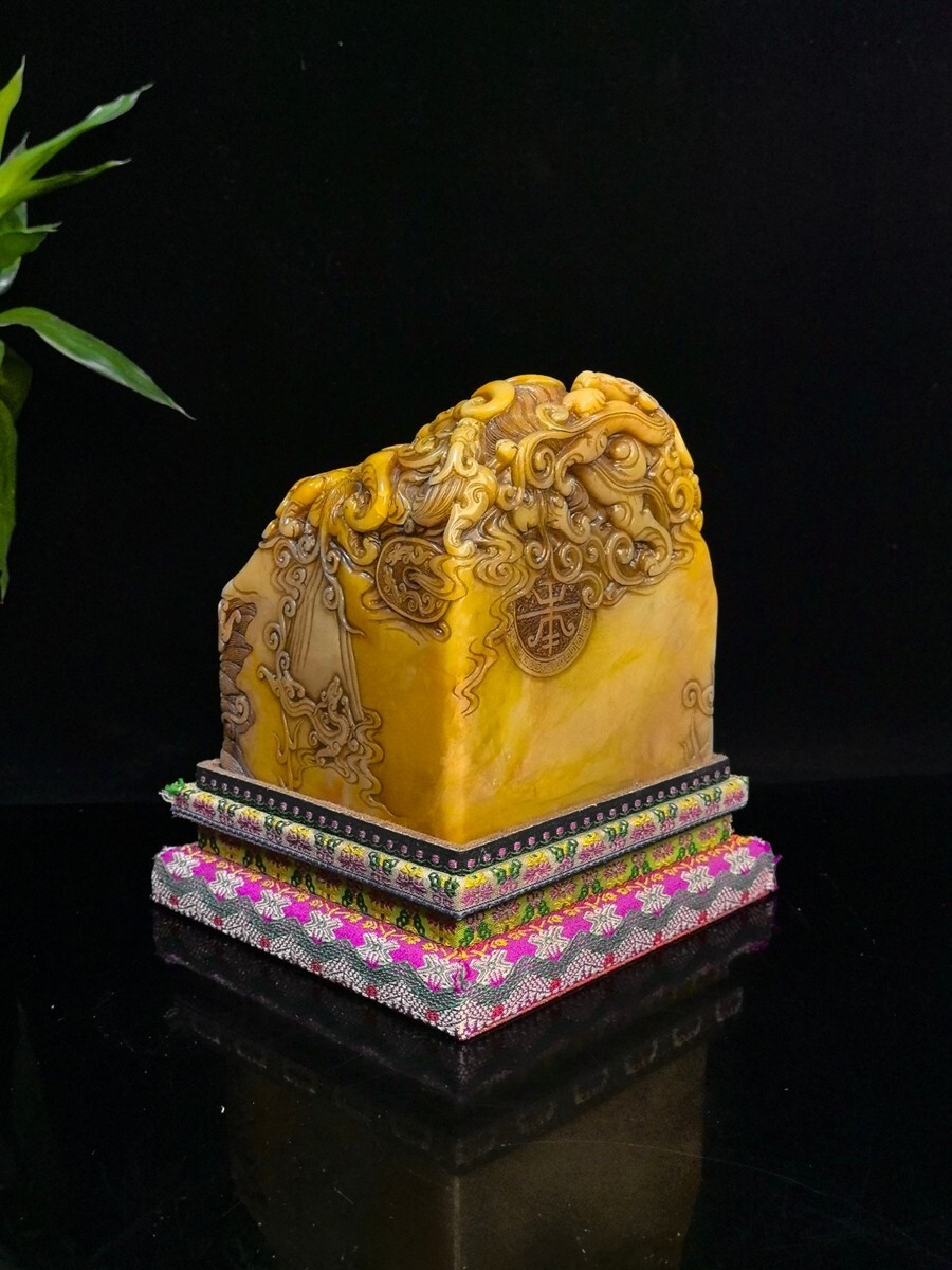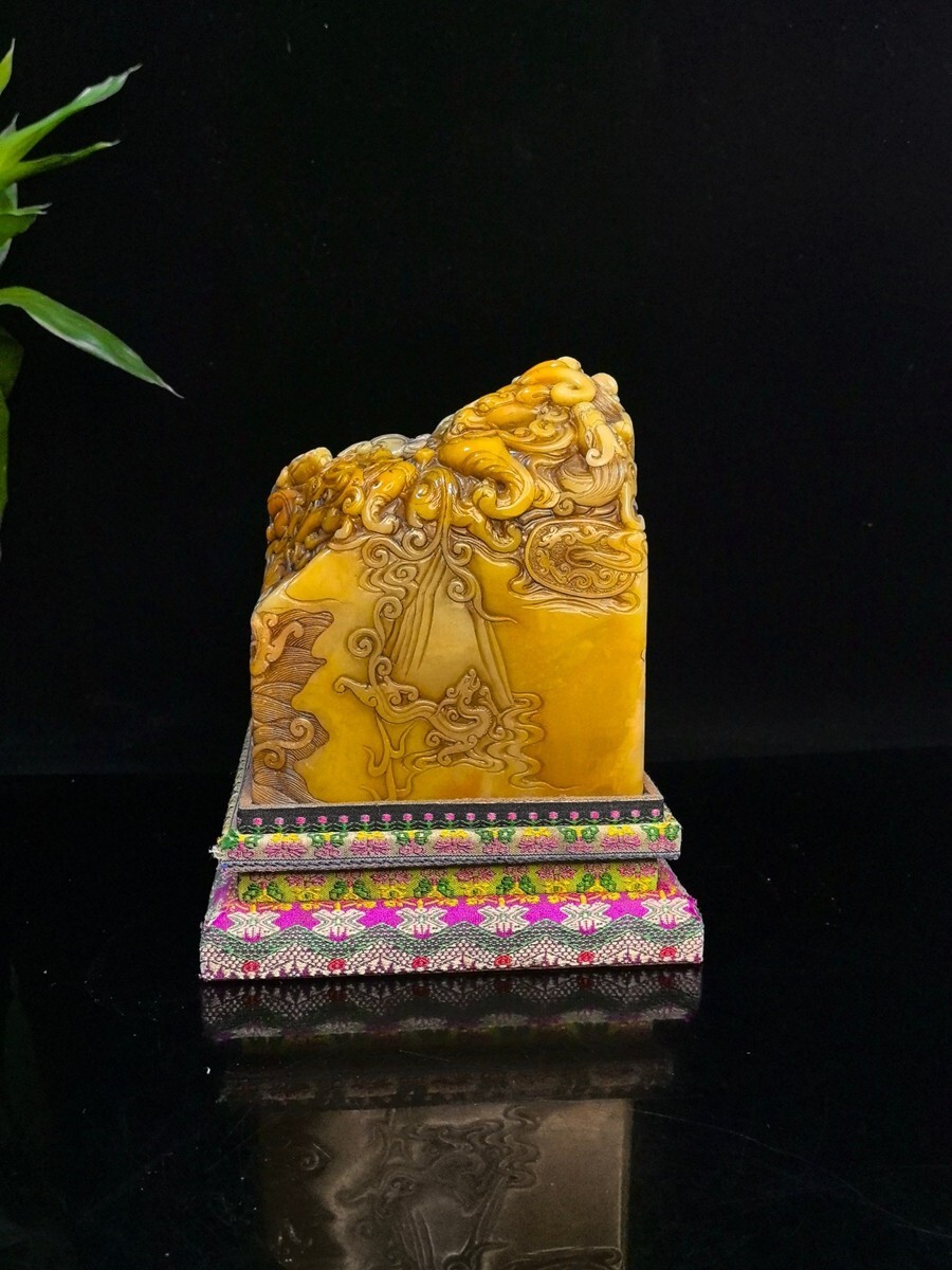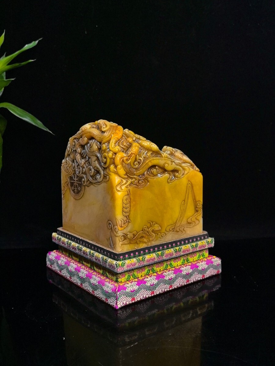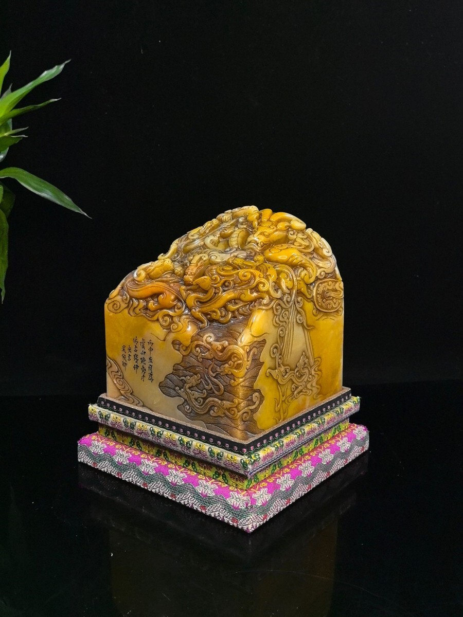 「清 呉俊卿 老寿山石 田黄石彫り 群龍印章」極細工 擺件 古賞物 中国古美術 旧蔵出