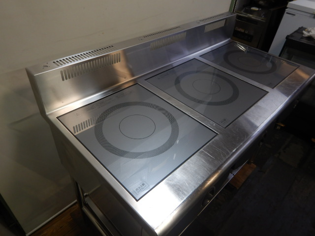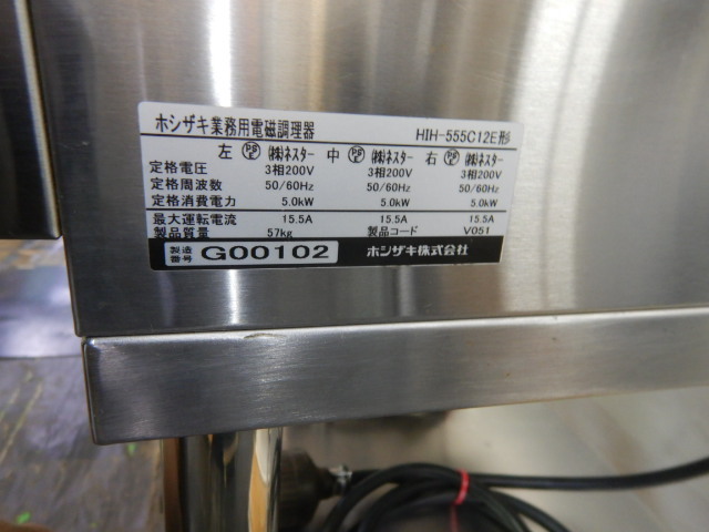 (代引不可)2017年製 ホシザキ HIH-555T12E 業務用 3口 IH コンロ W120D60H80(+15)cm 5kw×3 3連 電磁 調理機 74kg