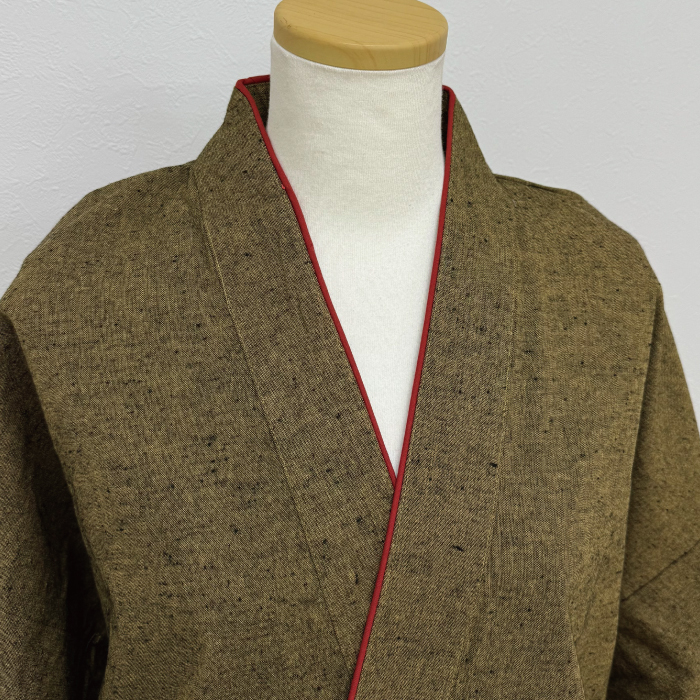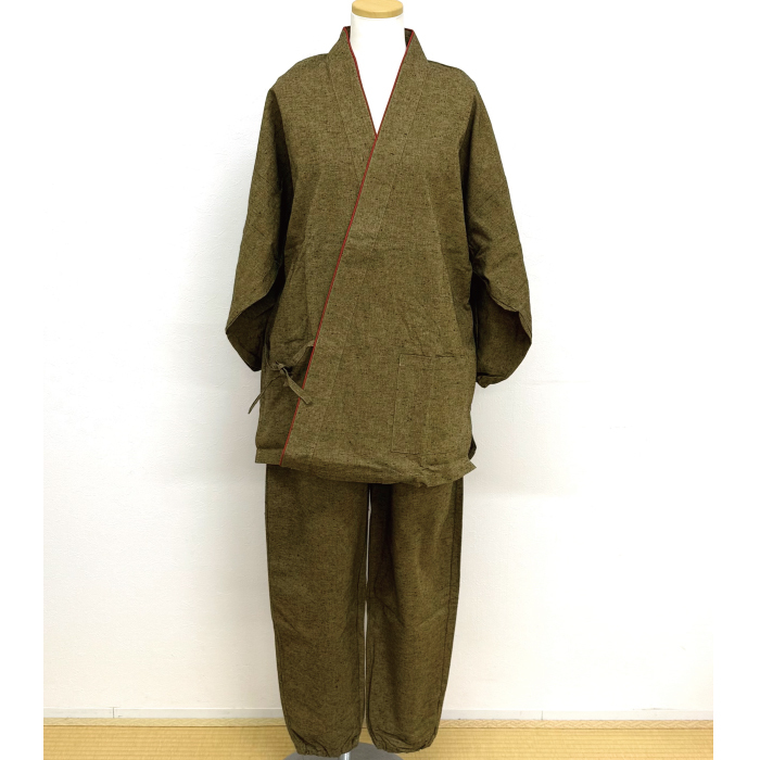 レディース作務衣マスタード ネップ生地お部屋でのくつろぎ着としてはもちろん、お出かけの際や趣味の作業など、様々なシーンでご愛用いただけます!【仕様】(上着)左前ポケット付・袖口ゴム(ズボン)左右ポケット各1・ウエストゴム入り/紐調節・裾口ゴム【着用目安】 通年(Lサイズ)適応身長:154~162cm胸囲:86~94cm胴囲:92~100cm上着丈:約75cm裄 :約71cmズボン丈:約97cm■品質表示素材:綿100% ・ 中国製