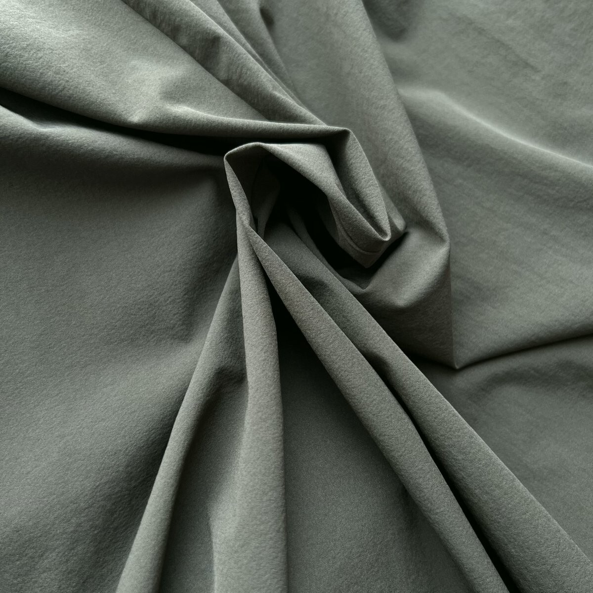 マットなストレッチナイロン素材で、シーズンを問わずお召しいただけます