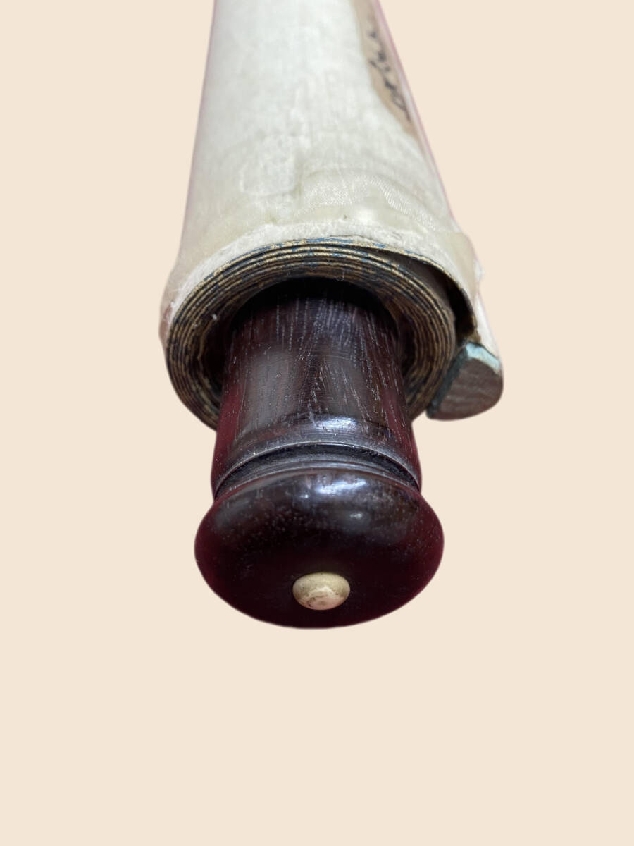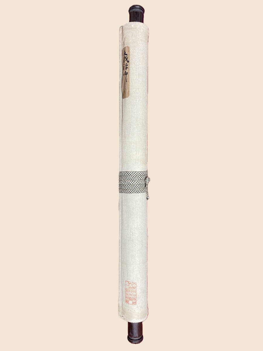 掛軸の軸先ですが、配送中の振動・気温・経年劣化等で外れてしまうことがあります。軸先の外れは、返品の対象にはなりません。大変お手数ですが、お客様ご自身での修復をお願い致します。