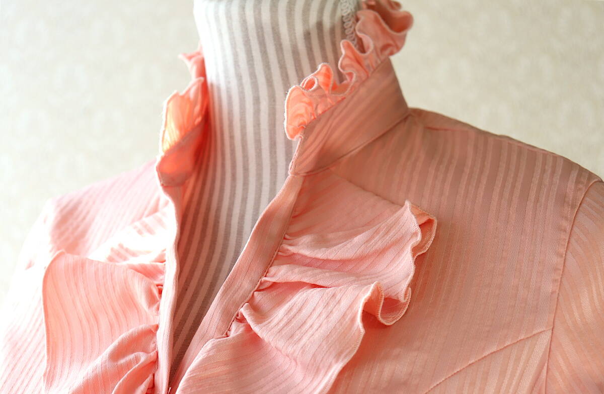 上品な光沢のある、ややピンクみのある落ち着いたオレンジのストライプ。肌馴染みの良い色です。