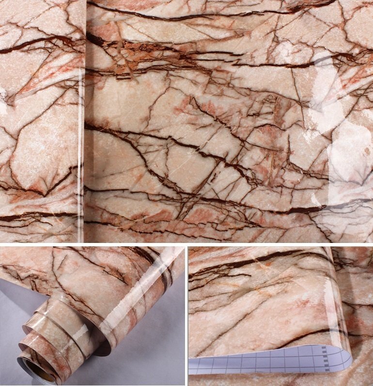 大理石調 【B431 ライトブラウン 茶 61cm×50m 】 壁紙 北欧 インテリア リメイクシール DIY カッティングシート 糊付き タイル 石