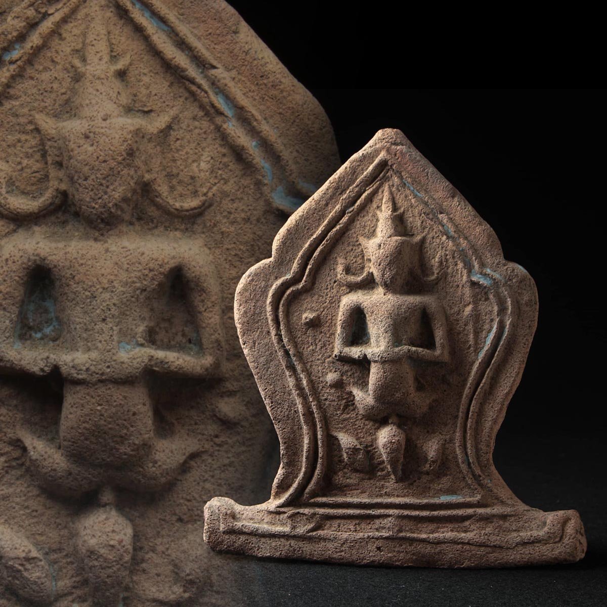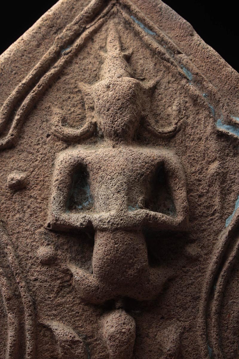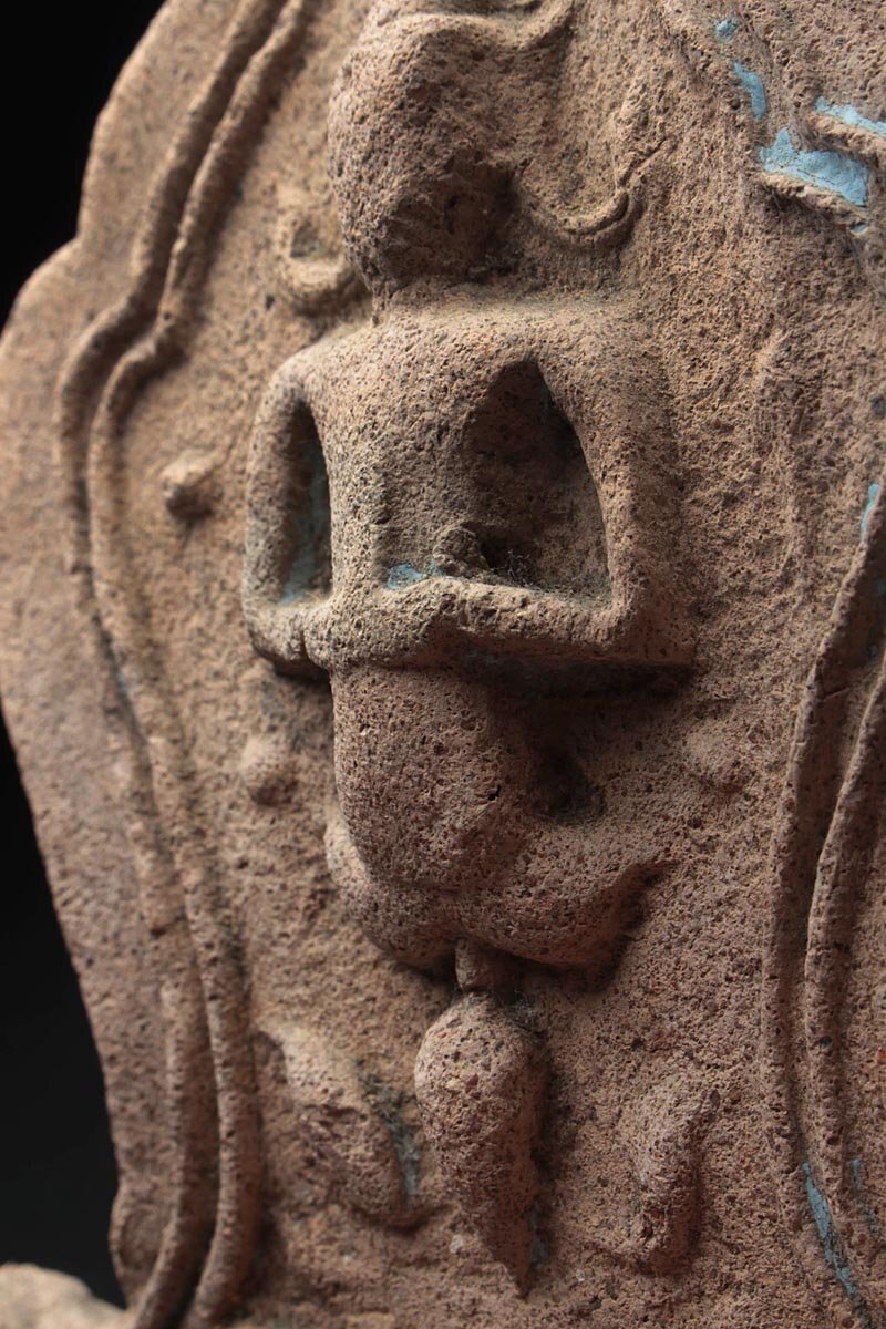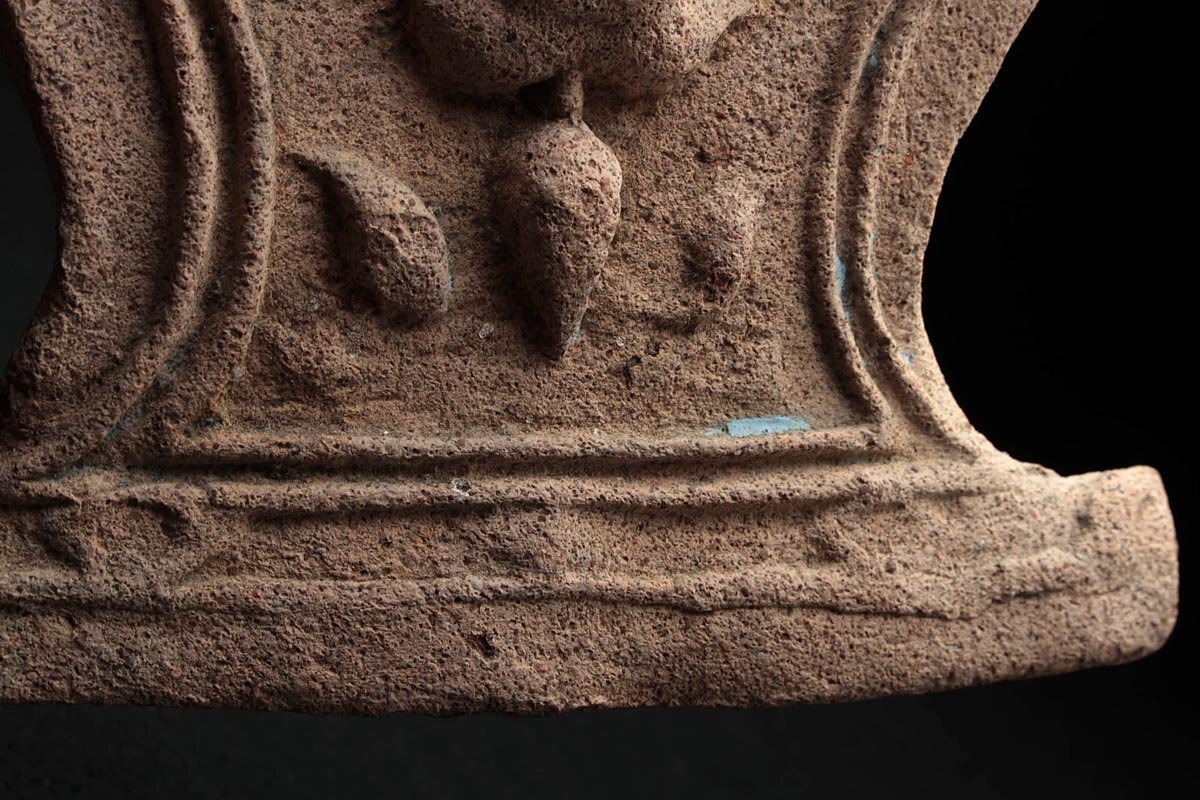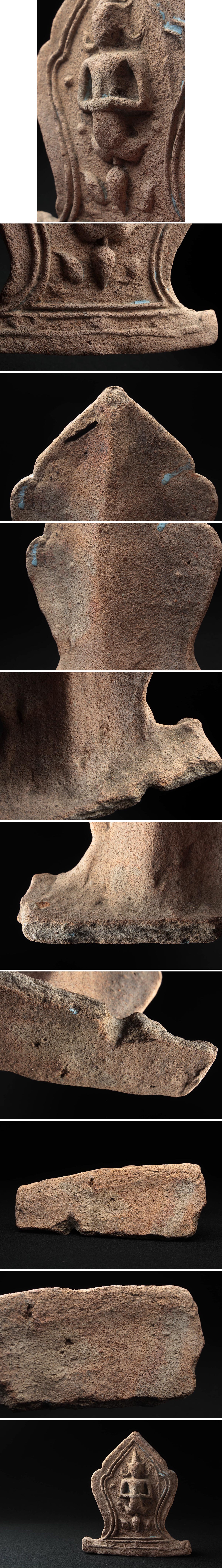 ◆ 仏教古美術 タイ 土器 テープ パノム文様 仏盛上 軒瓦 高17cm・瓦仏・仏文瓦・佛圖瓦当 宗教装飾 中国古玩 ◆