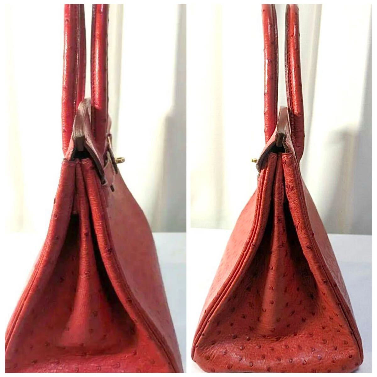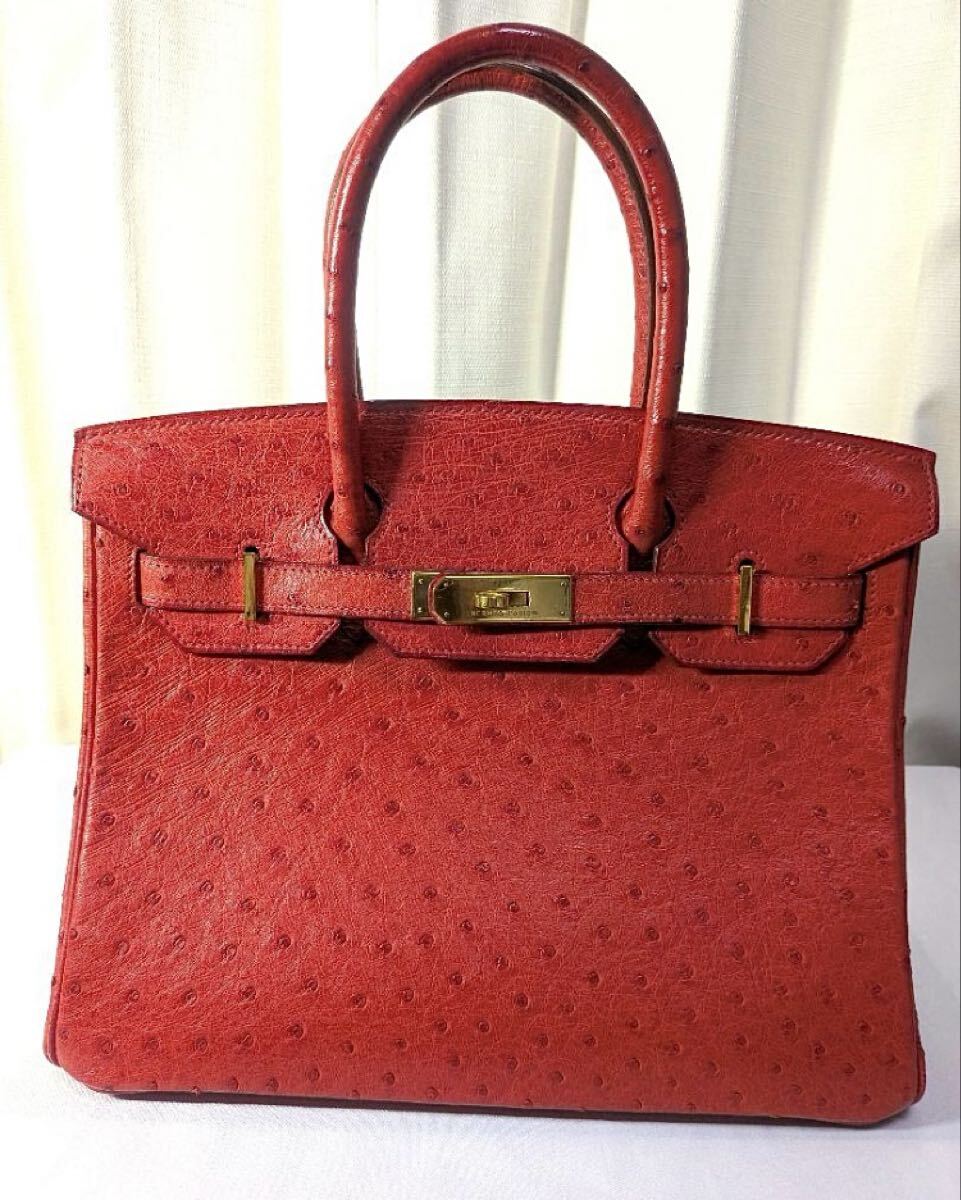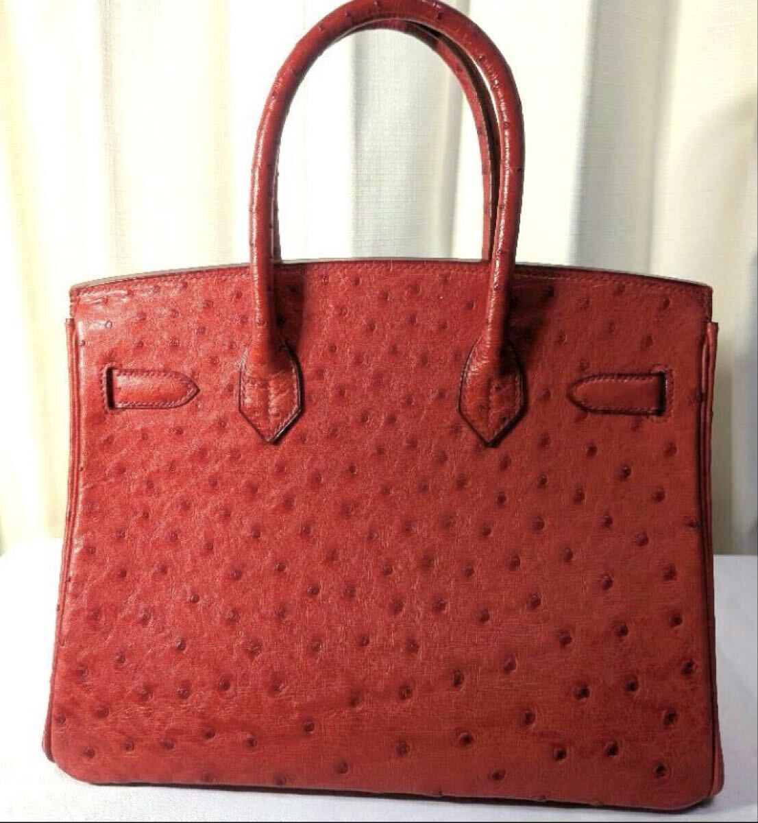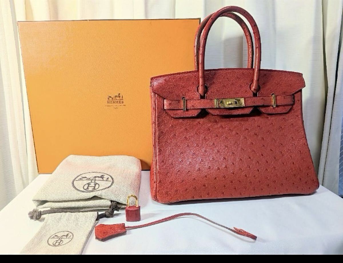 エルメス HERMES バーキン 30○X刻印 レッド系 ゴールド金具 オーストリッチ ハンドバッグレディース美品