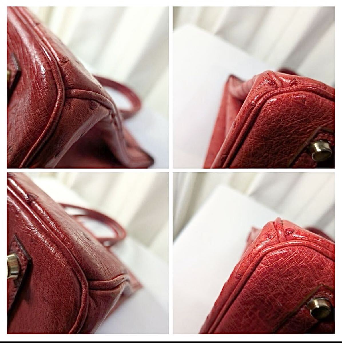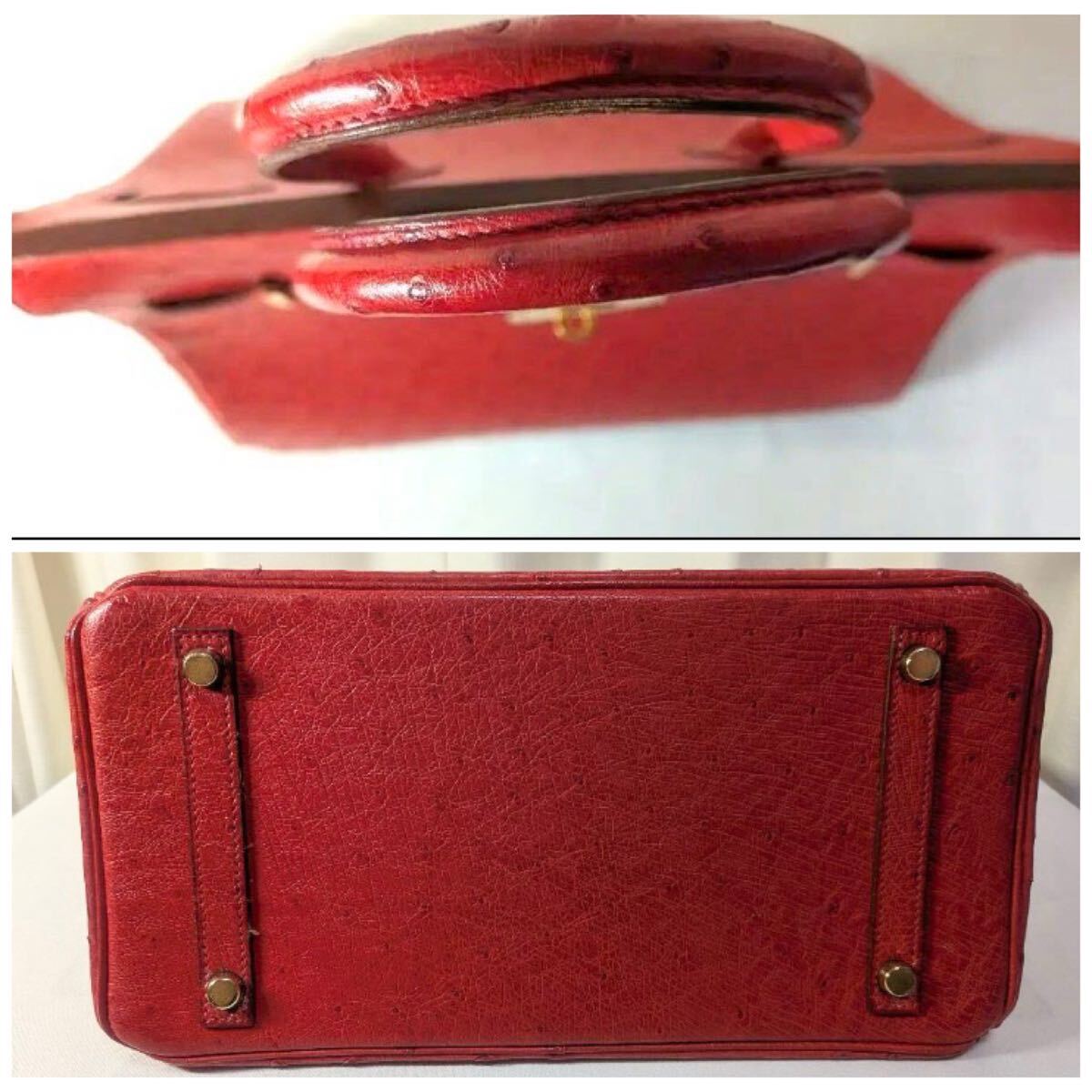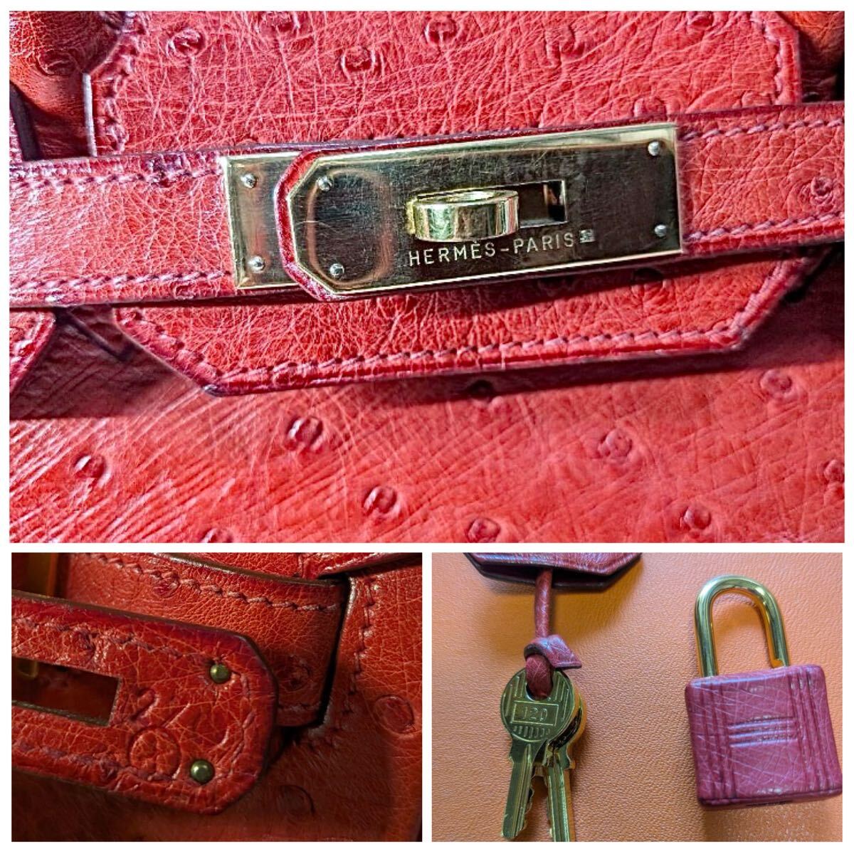 エルメスのレッドオーストリッチハンドバッグ、付属品完備。