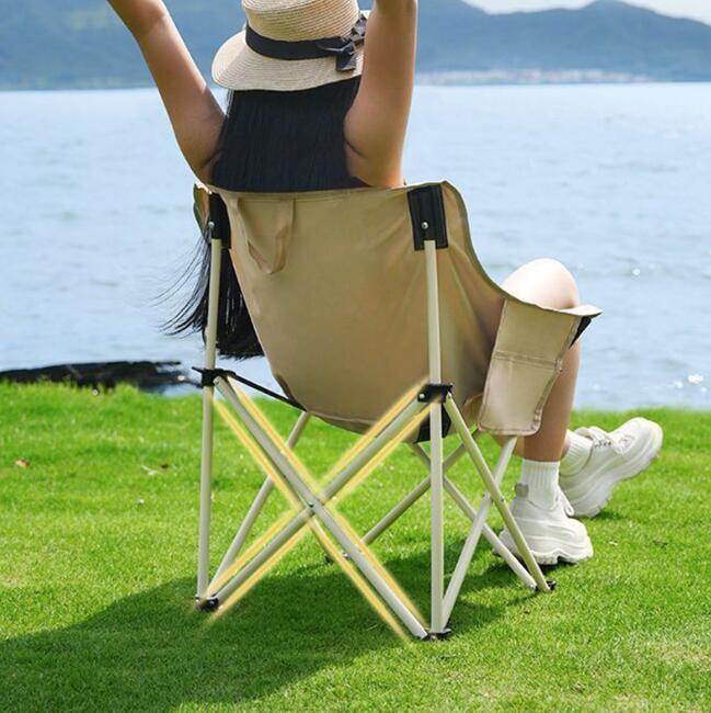 アウトドアで持ち運びに便利な折りたたみムーンチェアです。さまざまな角度調整が可能で、台座の補強がアップグレードされ、600 Dオックスフォード布を採用することでより強固で耐久性があり、荷重は240斤に達することができる