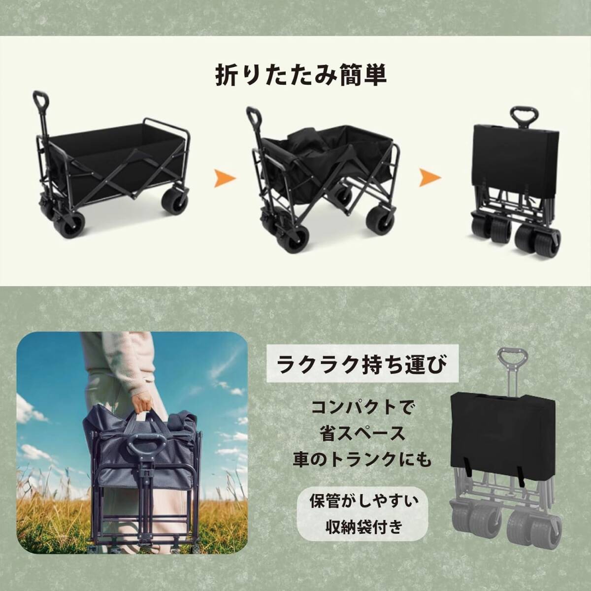 ALISE キャリーワゴン 大容量230L 耐荷重250kg 後部開閉 ボトルポケット付き 収納袋 キャリーカート キャンプカート