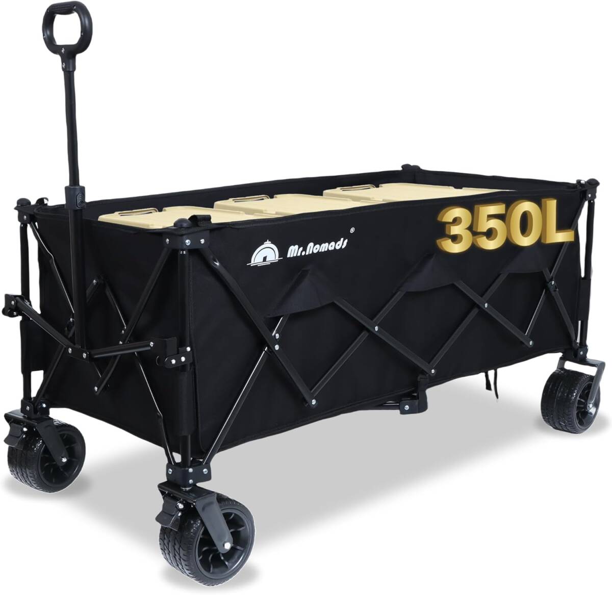 ブラック色 リア無し MR. NOMADS 350L ラグビー日本代表採用メーカー キャリーワゴン 耐荷重220kg 大型タイヤ 自立収納