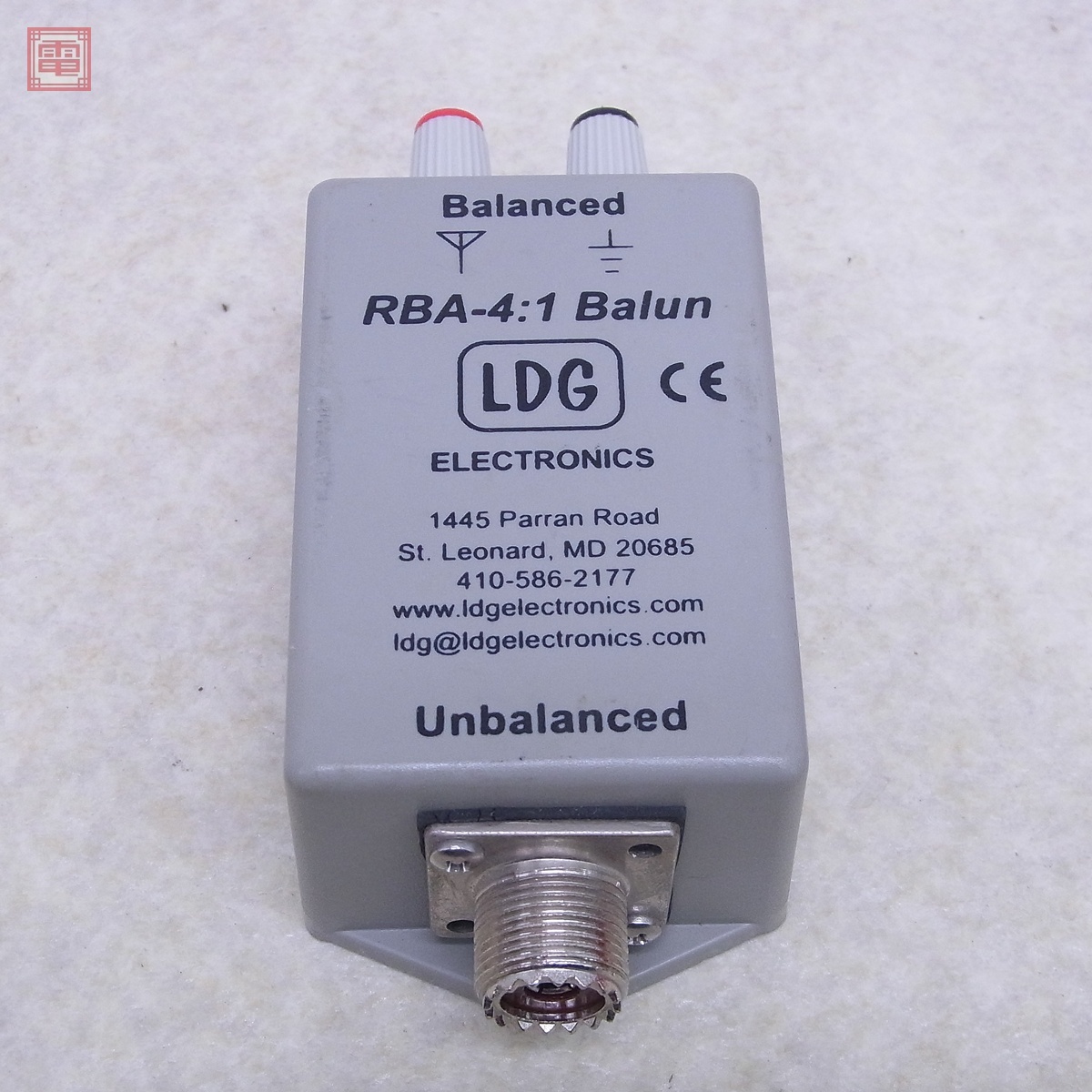 LDGエレクトロニクス RBA-4:1 バラン HF帯 耐電力200W LDGチューナー用 取説・元箱付 ■<出品物> ・本体 ・英文取扱説明書 ・元箱 ※上記以外の付属品は写真にてご確認ください。 ■<状態> ・中古品の為キズ、汚れ等はご容赦ください。 ・外観等の詳細は写真にてご確認ください。 ・タバコ臭はありません。 ■写真のものが全てです。付属物の有無や状態については写真からご判断ください。 ■付属物については細かいチェックはしておりませんので、万が一、欠品があったり余計な物が入っていたとしてもご了承ください。 ■商品到着後、当店の保証期間中は、商品及び箱や取説、付属品などを1つでも廃棄や破損をしないようにお願い致します。廃棄や破損をした場合、商品に問題があった場合でも対応や返金などの対処ができなくなります。 ■商品によりますが、発売されてから10年以上経過している中古品である事をご理解頂いた上でご入札をお願い致します。なお、新品や美品、また特記事項がある場合は別途明記します。 | |||