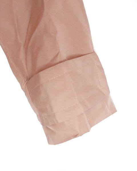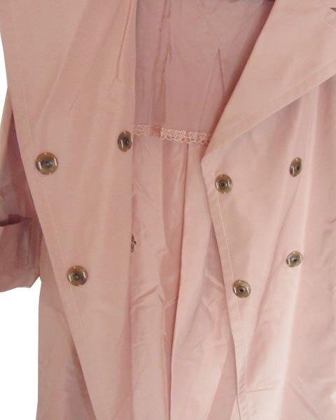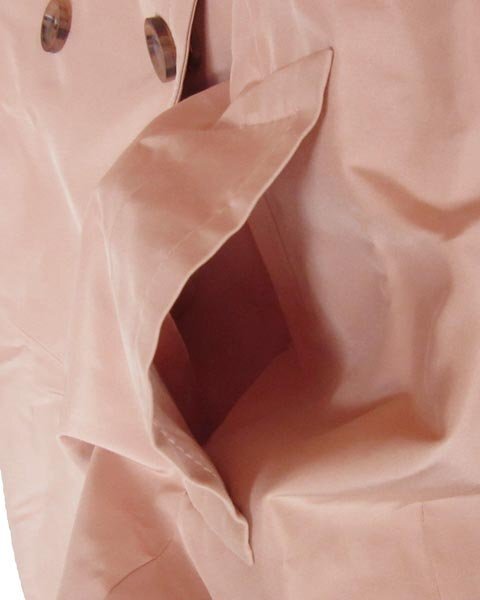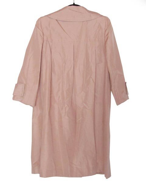 | やや光沢のあるハリのある生地のシルクのコート。春先から秋口で肌寒い時に活躍してくれます。上品なピンクベージュで、甘目なスタイルが楽しめます。シンプルなデザインなので使いやすいデザインです。 |