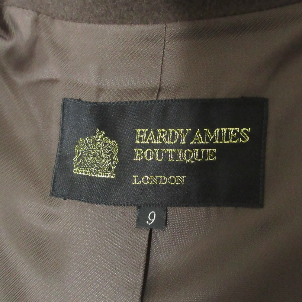 美品 HARDY AMIES ハーディエイミス カシミヤ100% スタンドカラー ロングコート 9号 ブラウン