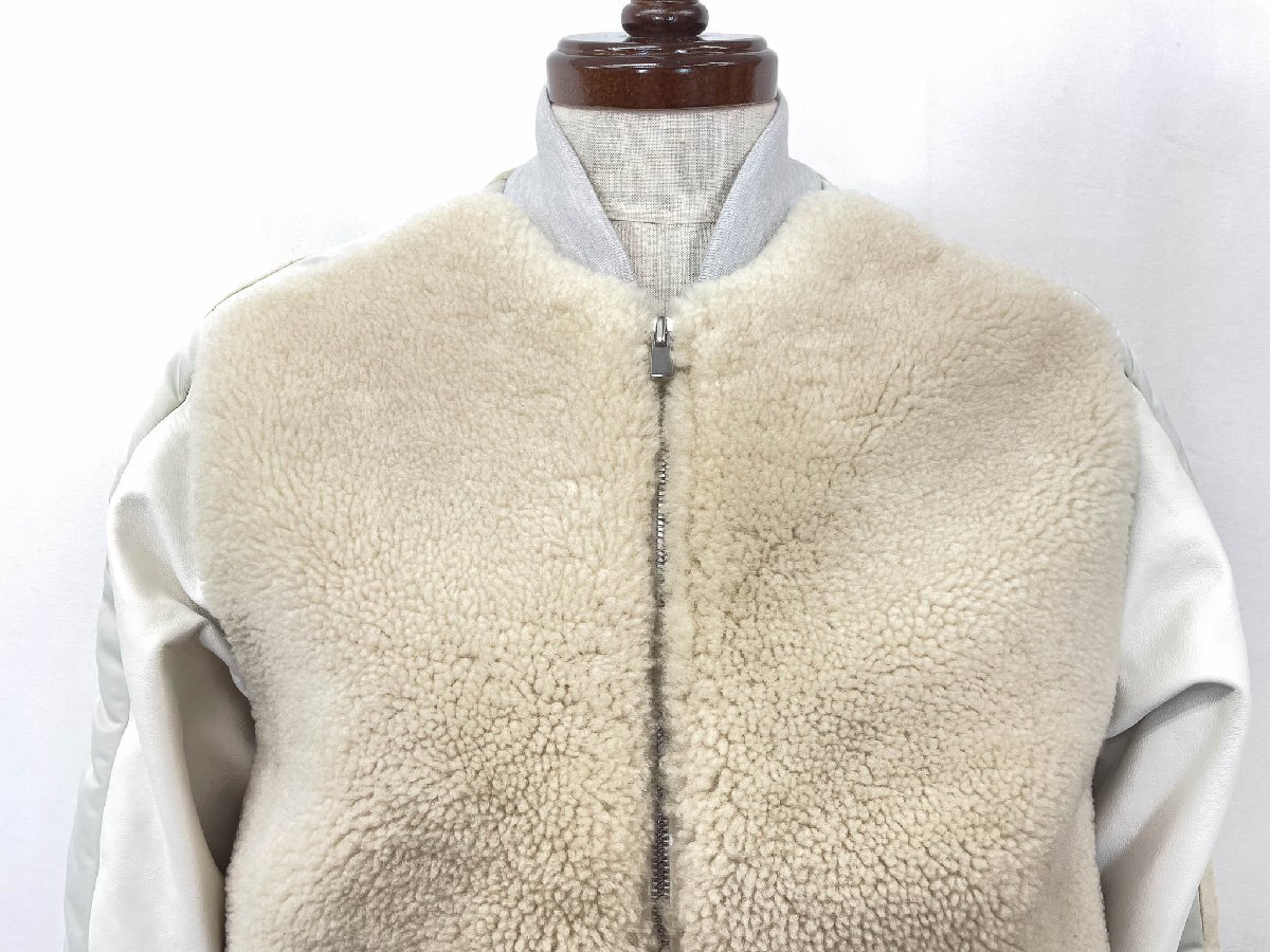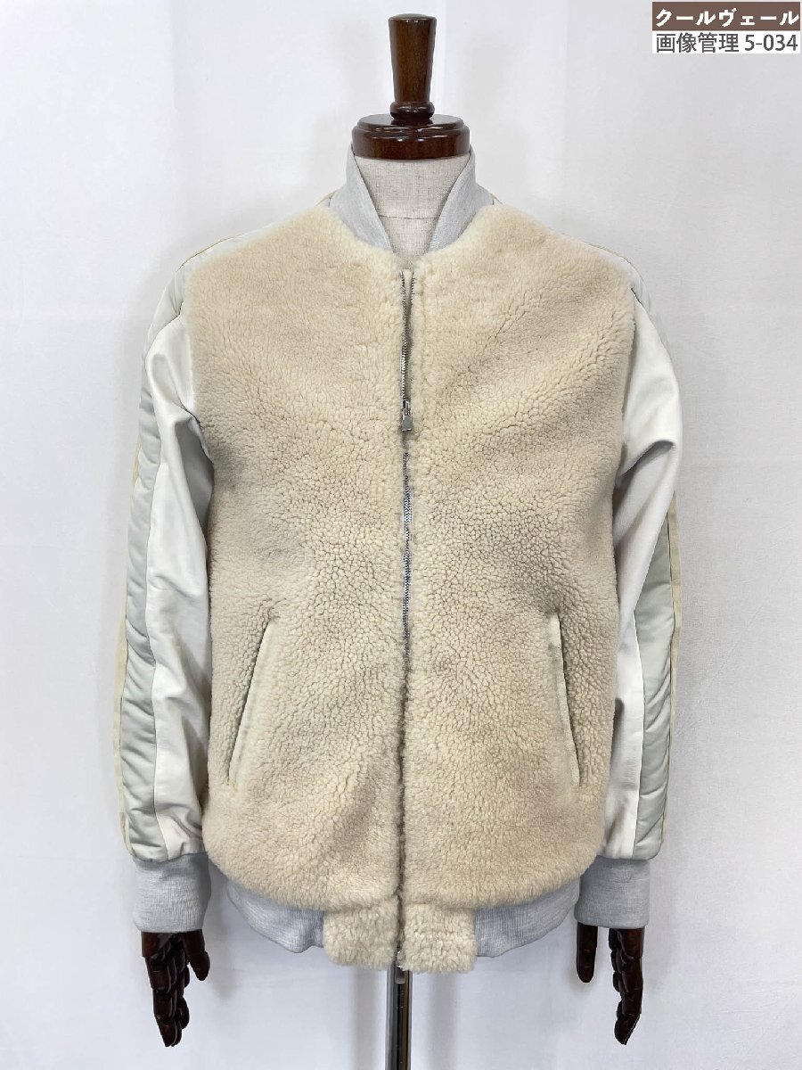 美品【DESIGNWORKS デザインワークス】0335-00-90003 ムートン×スエード切替 ブルゾン(メンズ) L ライトグレー×ベージュ系◇17MB5001◇