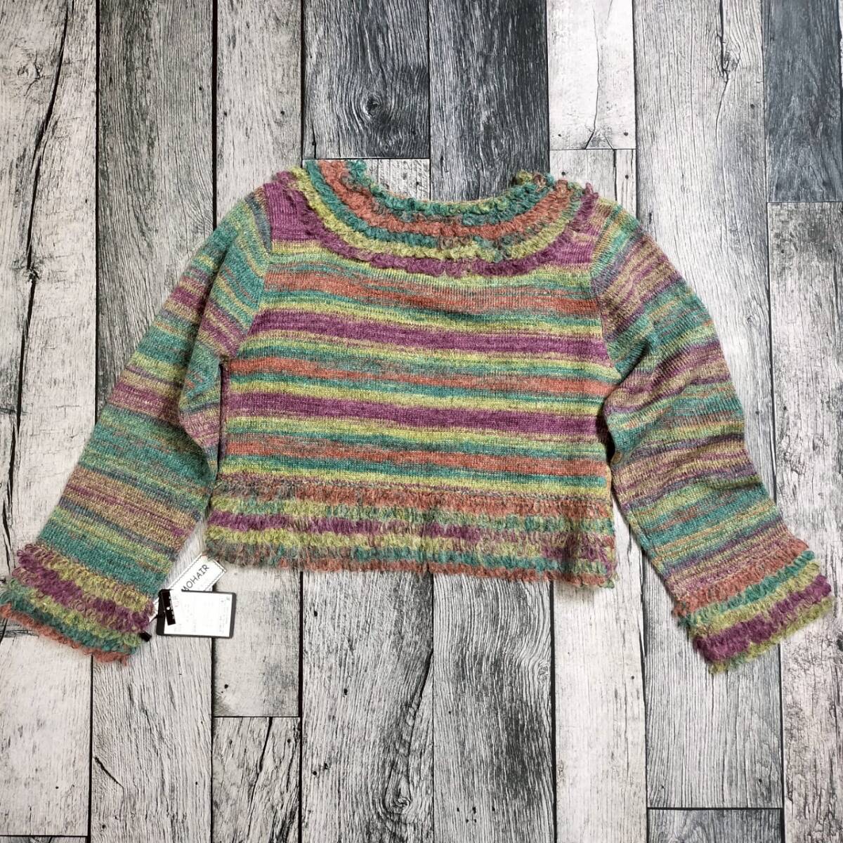 新品 未使用 LA SANTE ラサンテ モヘヤ混 ニットカーディガン マルチボーダー アクリル ポリエステル M〜Lサイズ やわらか 上品カラー