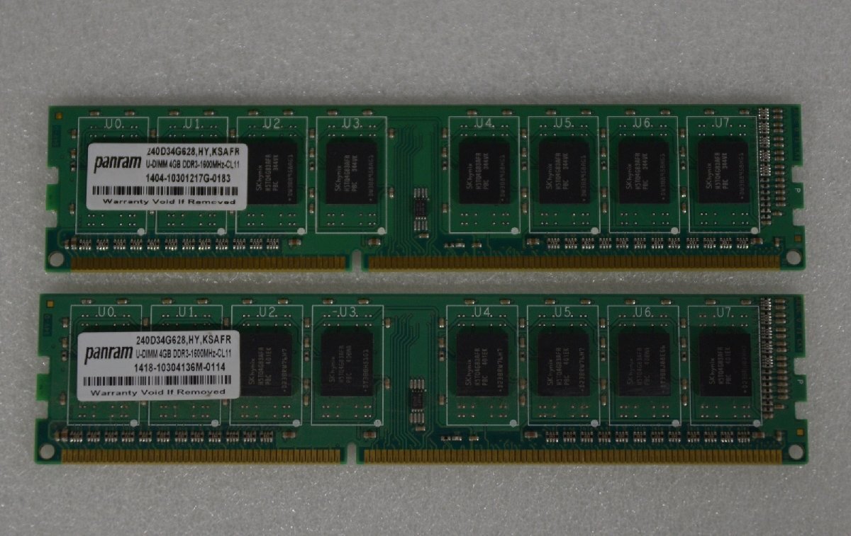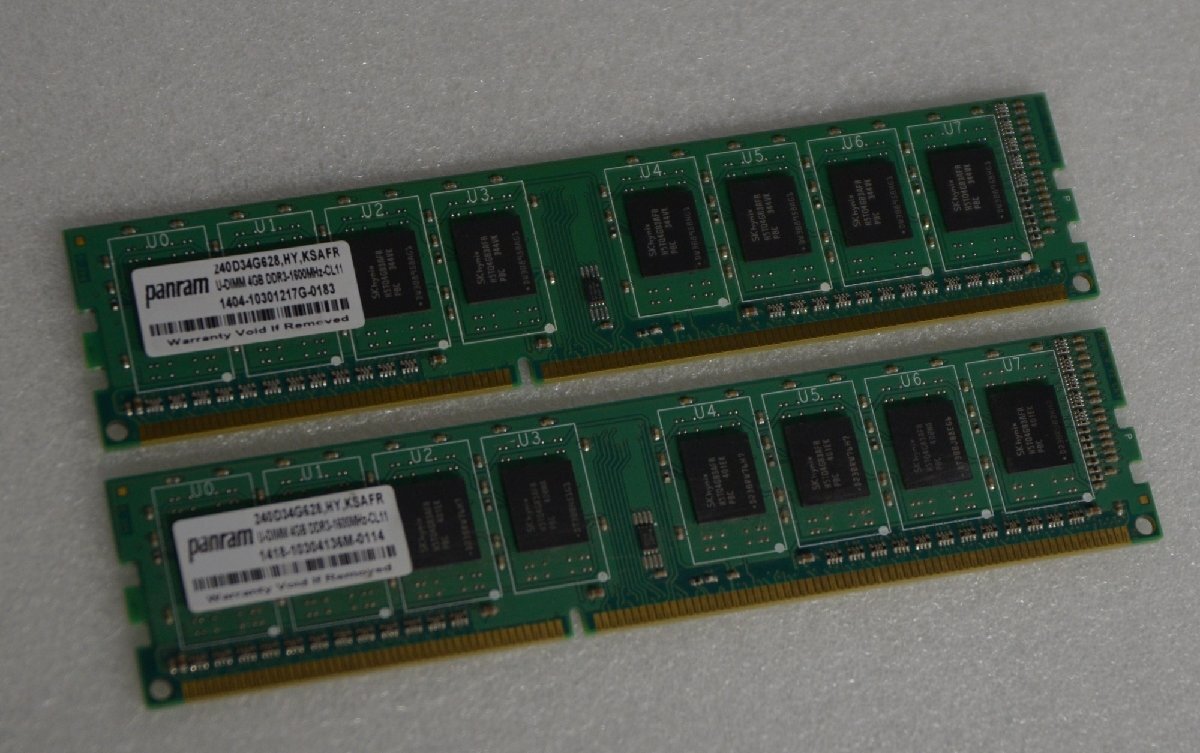 panaram 240D34G628 (4GB PC3- 12800U) メモリー中古品×2枚の出品です。