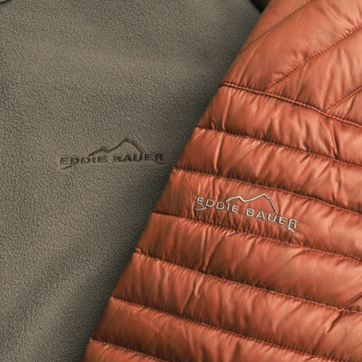 1920年設立、カジュアルウェアやアウトドア用品を中心に展開するアメリカのファッションブランド『Eddie Bauer エディーバウアー』のジャケット、ダウンベストの2点セットです。