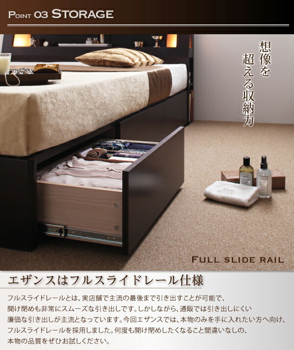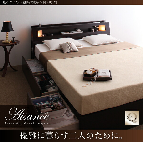 組立設置付き モダンデザイン・大型サイズ収納ベッド Aisance エザンス スタンダードボンネルコイルマットレス付き クイーン(Q×1)【フレームカラー:ダークブラウン】【マットレスカラー:ブラック】です。