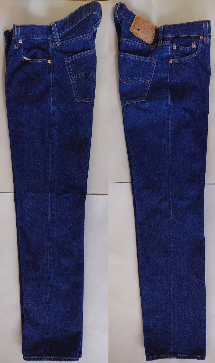 本個体は2020年頃に某大手リサイクルショップ店頭で購入しました。色残りは90%前後、多少のアタリ・パッカリングはありますが、ここから穿きこむには最適だと思います(デッドストックやワンウォッシュレベルの個体を穿きこむのは心情的に難しくなってきていると思われます)。