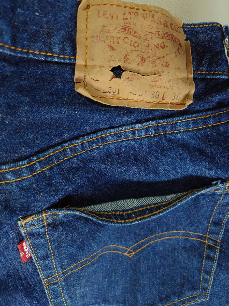 米国・バレンシア工場製造(コーンミルズ社製デニム使用)、1960年代モデル復刻版501(BIG-E 赤耳)・中古です。