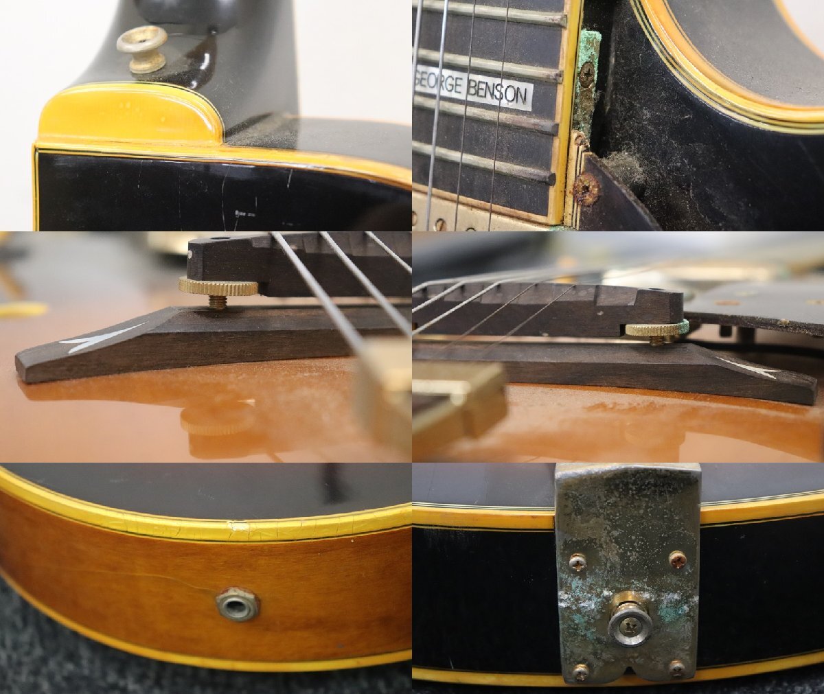 ◆外観◆ ・★キズ、汚れ、使用感があります。 ・★ブリッジが浮いております。 ・★ペグが1つ欠品しております。 ・★ヒールにヒビが見受けられます。 ・★ノブにヒビが見受けられます。 ・★ボディの各箇所に打痕が見受けられます。 ・★ジャック付近の表面にヒビが見受けられます。 |