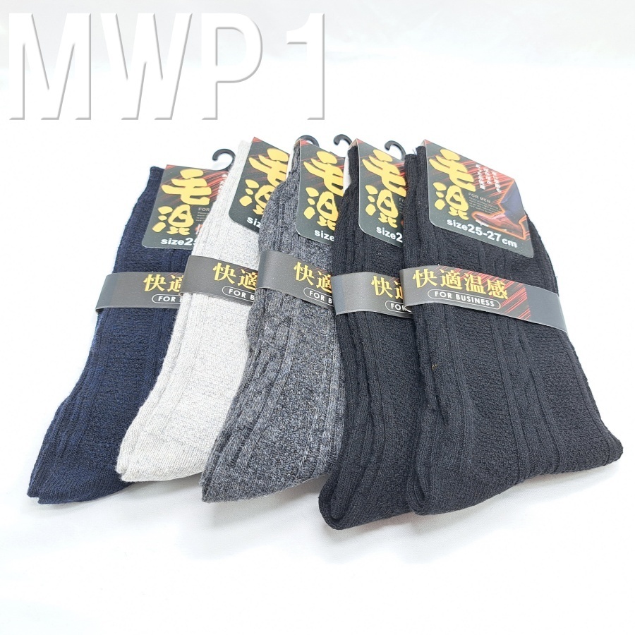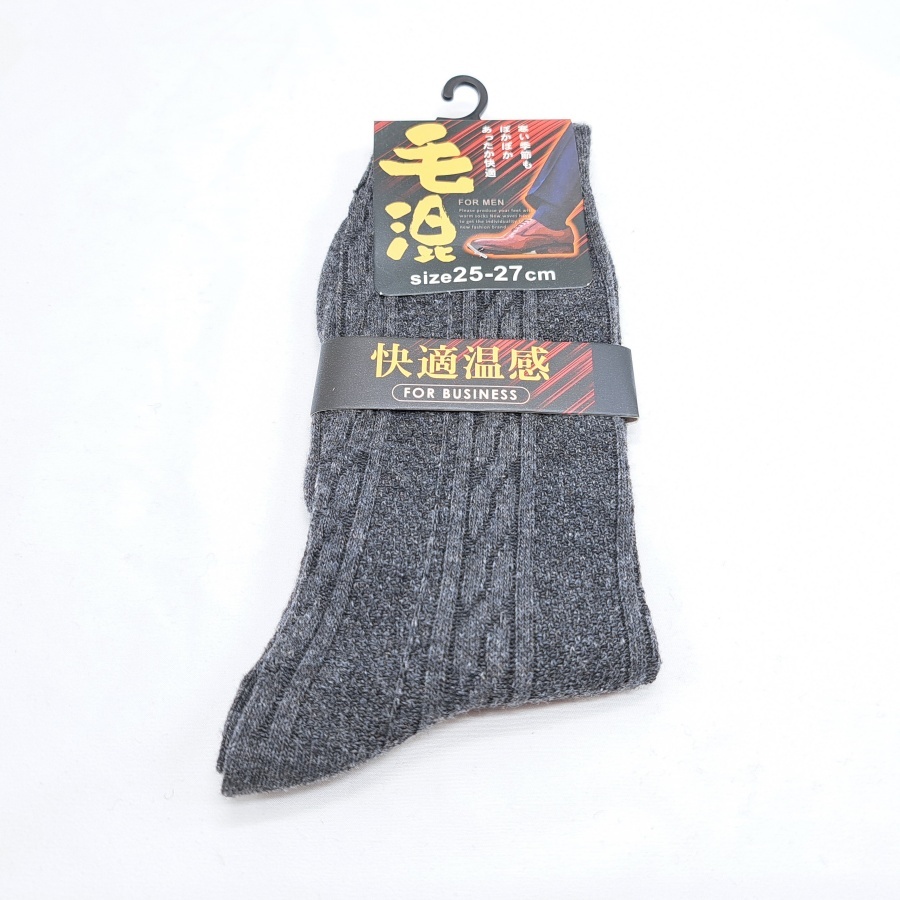 メンズ 毛混 無地 ケーブル柄 ソックス 5足 MWP1 25-27センチ ビジネス