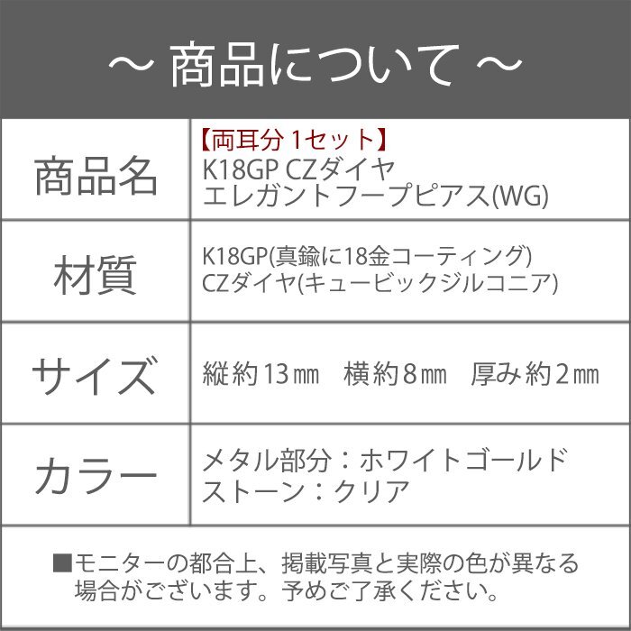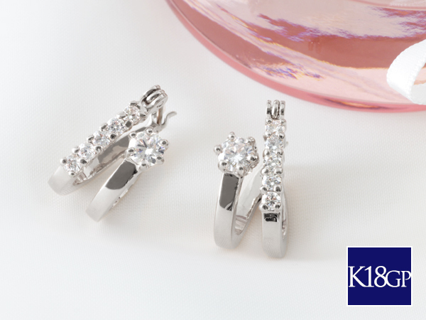 フープ ピアス レディース リング シルバー 18金 18kコーティング ホワイトゴールド 上品 / K18GP CZダイヤ エレガントフープピアス WG