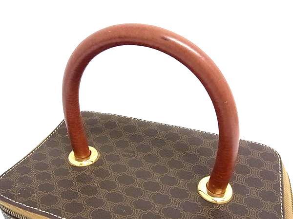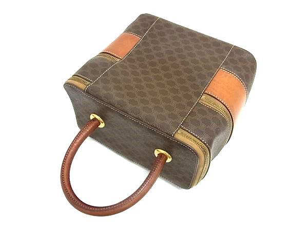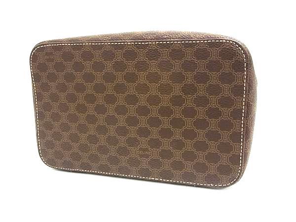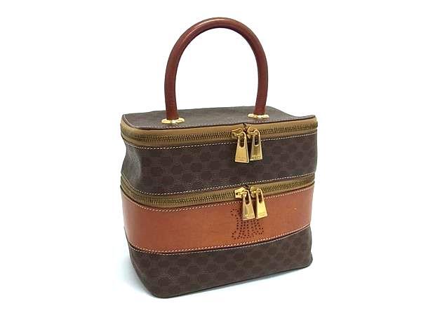 1円 CELINE セリーヌ マカダム柄 PVC×レザー バニティバッグ バニティポーチ メイクポーチ レディース ブラウン系 FR5401